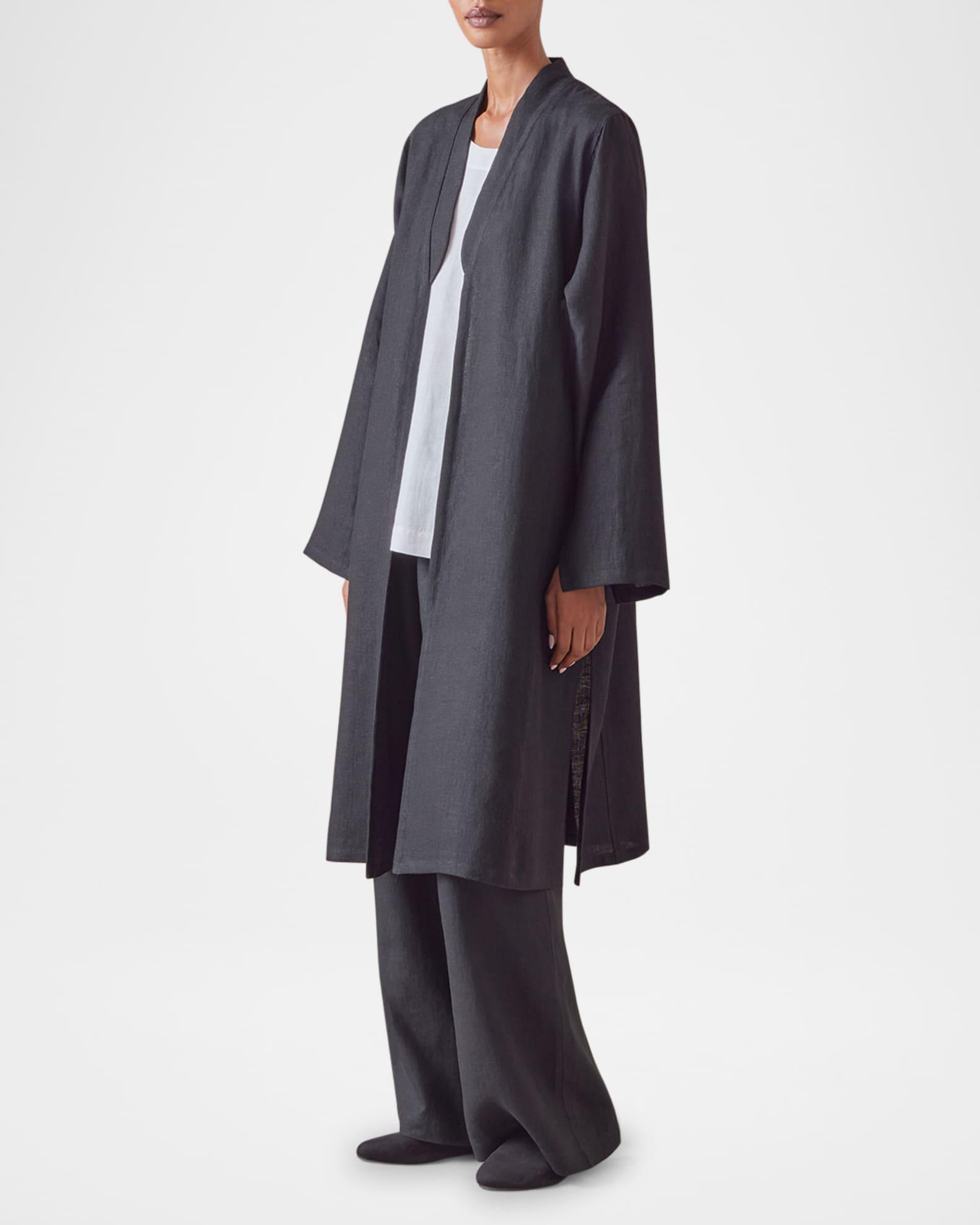 Eskandar bakhtiari coat with side slits Open front Long sleeves Wide fit Linen Made in Poland