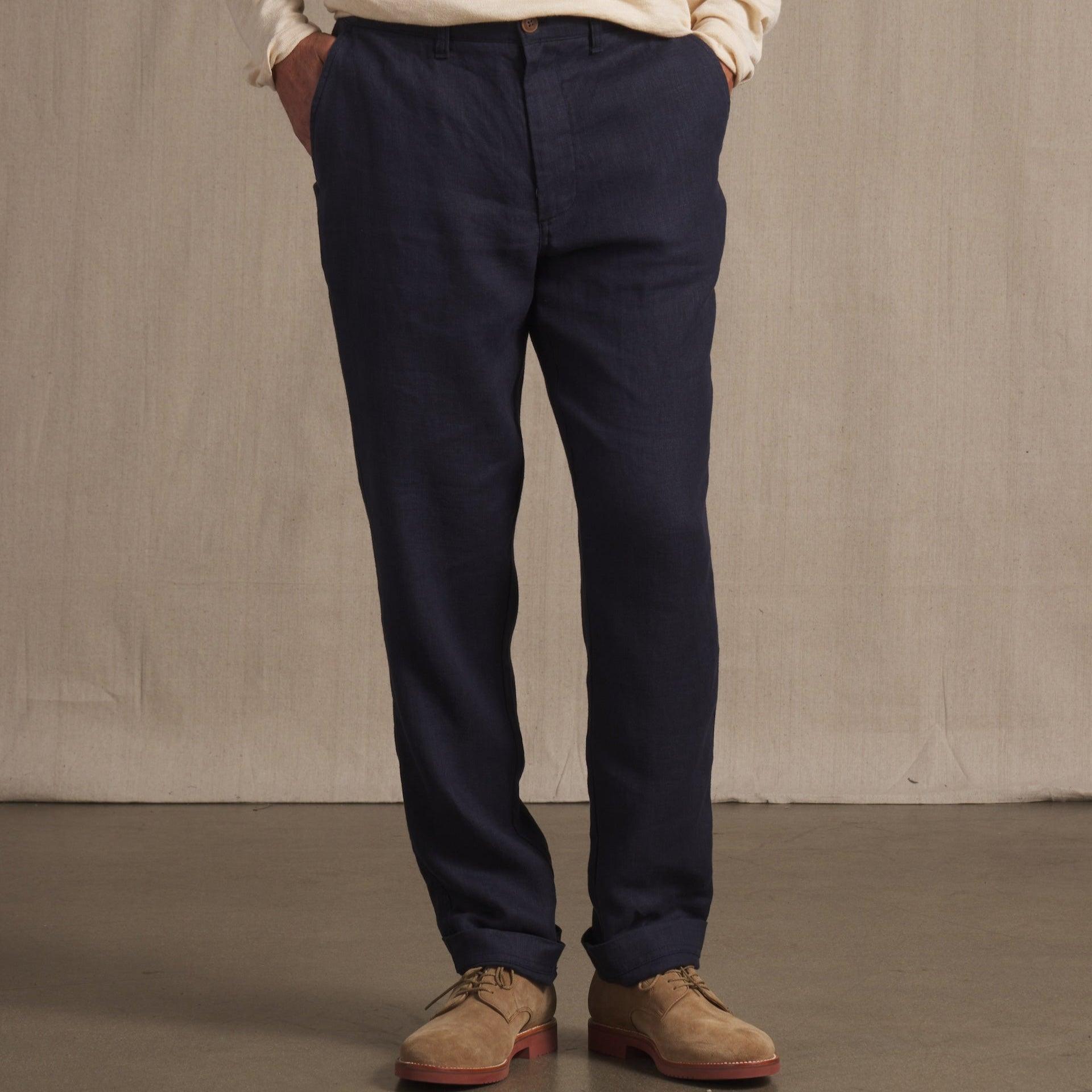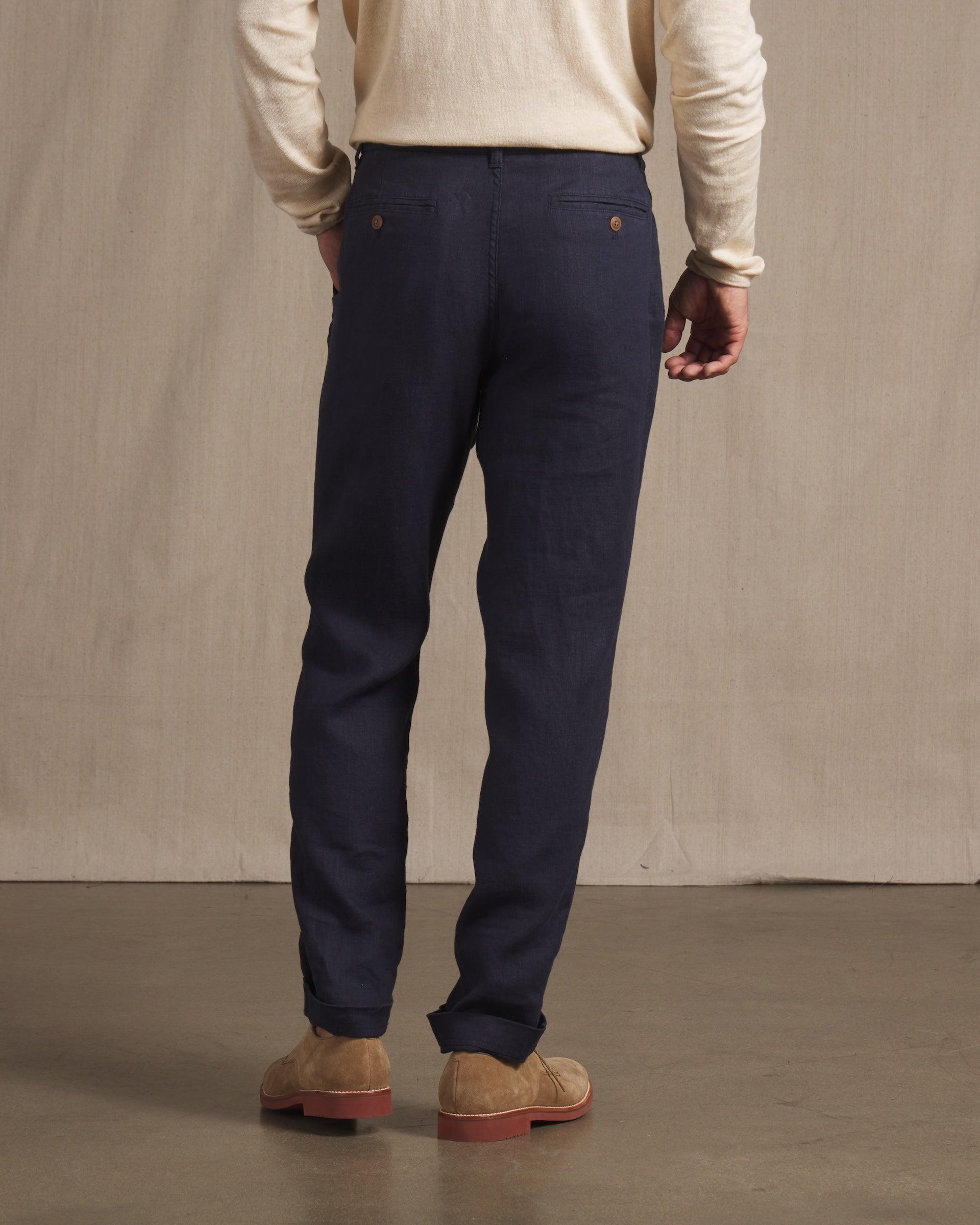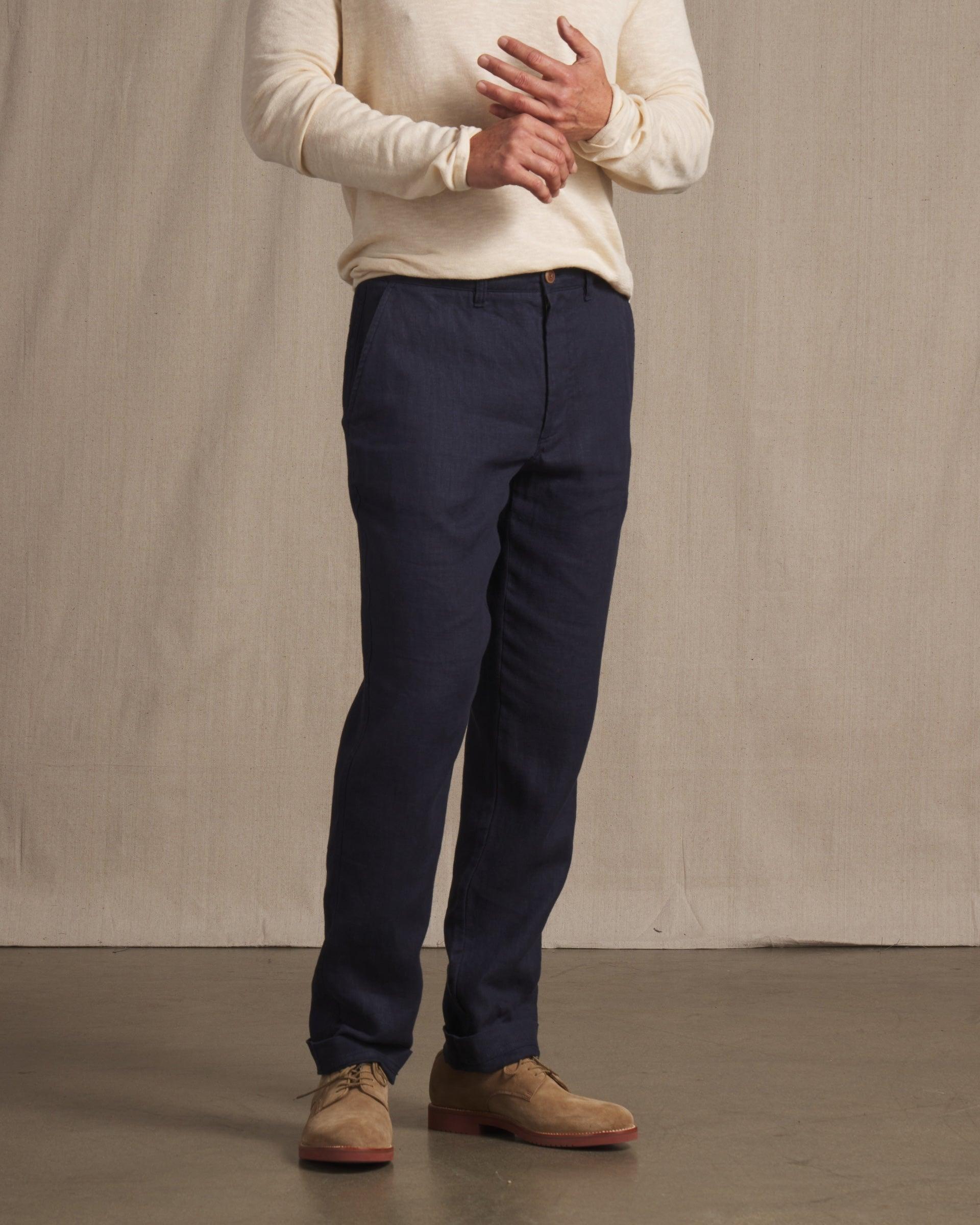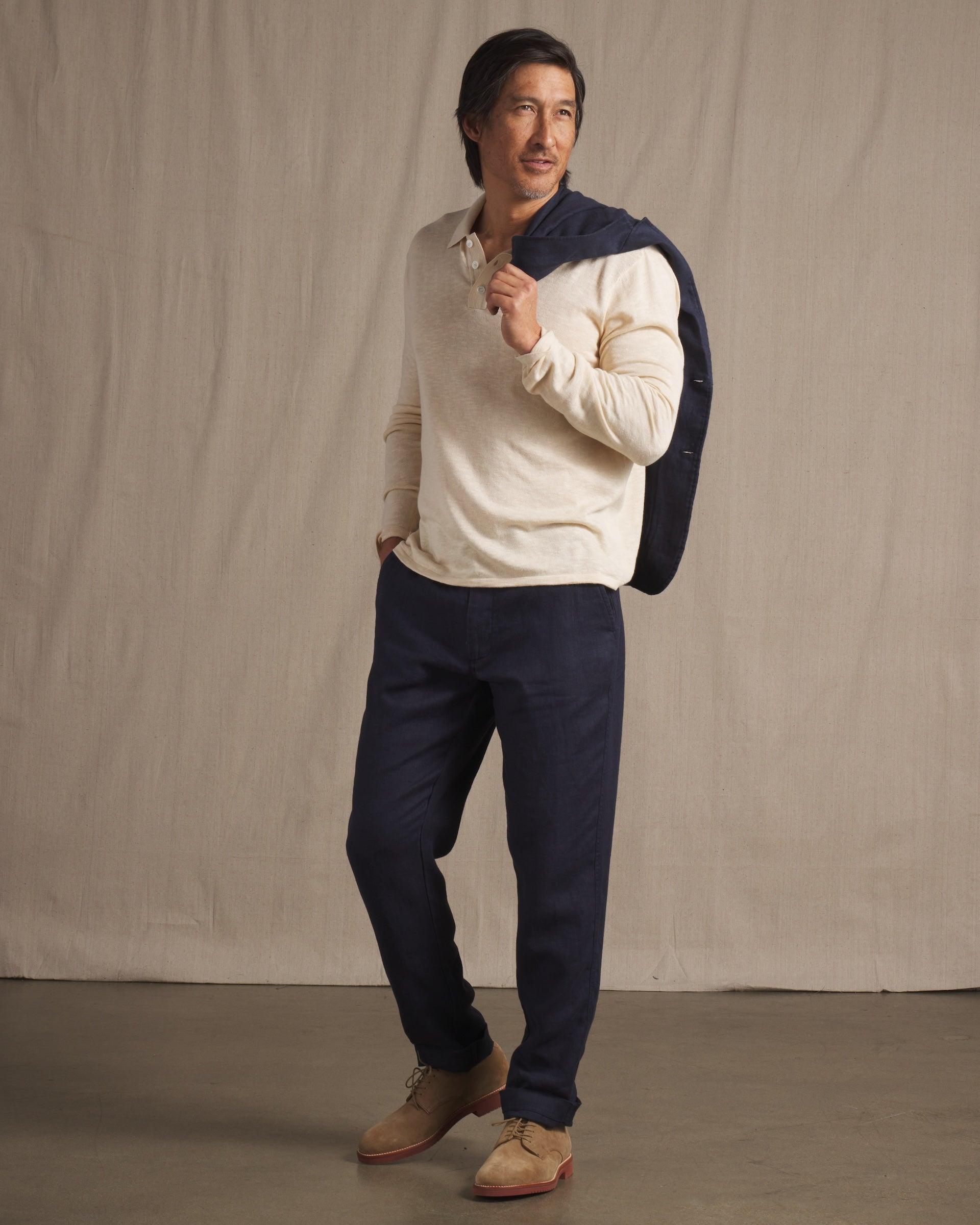 The Bal Harbour collection features premium top-dyed linen yarn in natural tones for a slightly elevated look. The fabrics are light, crisp and suitable for a semi-constructed pant and blazer. Slightly tapered leg for a more modern fit. You can dress this pant up with a matching Bal Harbour blazer or go casual with a pocket tee. The Model is also wearing: Cloud Cotton Sweater Long Sleeve Polo - Sand. Model: Adrian is wearing size medium and is 6'. ----Details---- Quarter top pocket Chambray pocketing Piped seams Slightly tapered leg Two besom button through back pockets 7" leg opening Imported ----Materials---- 100% Linen ----Size & Fit---- Measuring Method: All measurements are in inches and based on a “flat” garment, as shown below. For comparison with one of your existing garments, please lay garment on a flat surface and follow the key measurement points. ----Care---- Machine Wash Cold Separately Do Not Soak Before Washing Do Not Bleach Remove Promptly Tumble Dry Low Cool Iron if Necessary