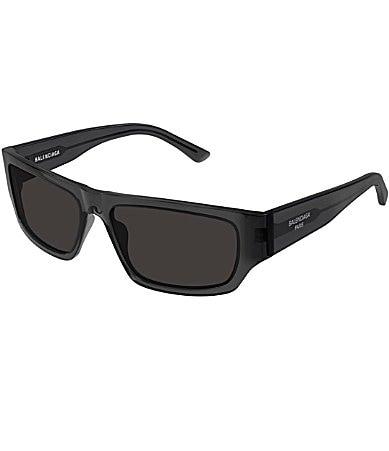 Balenciaga Mens Tuesday 58mm Rectangle Sunglasses - Shiny Transparent Dark Grey