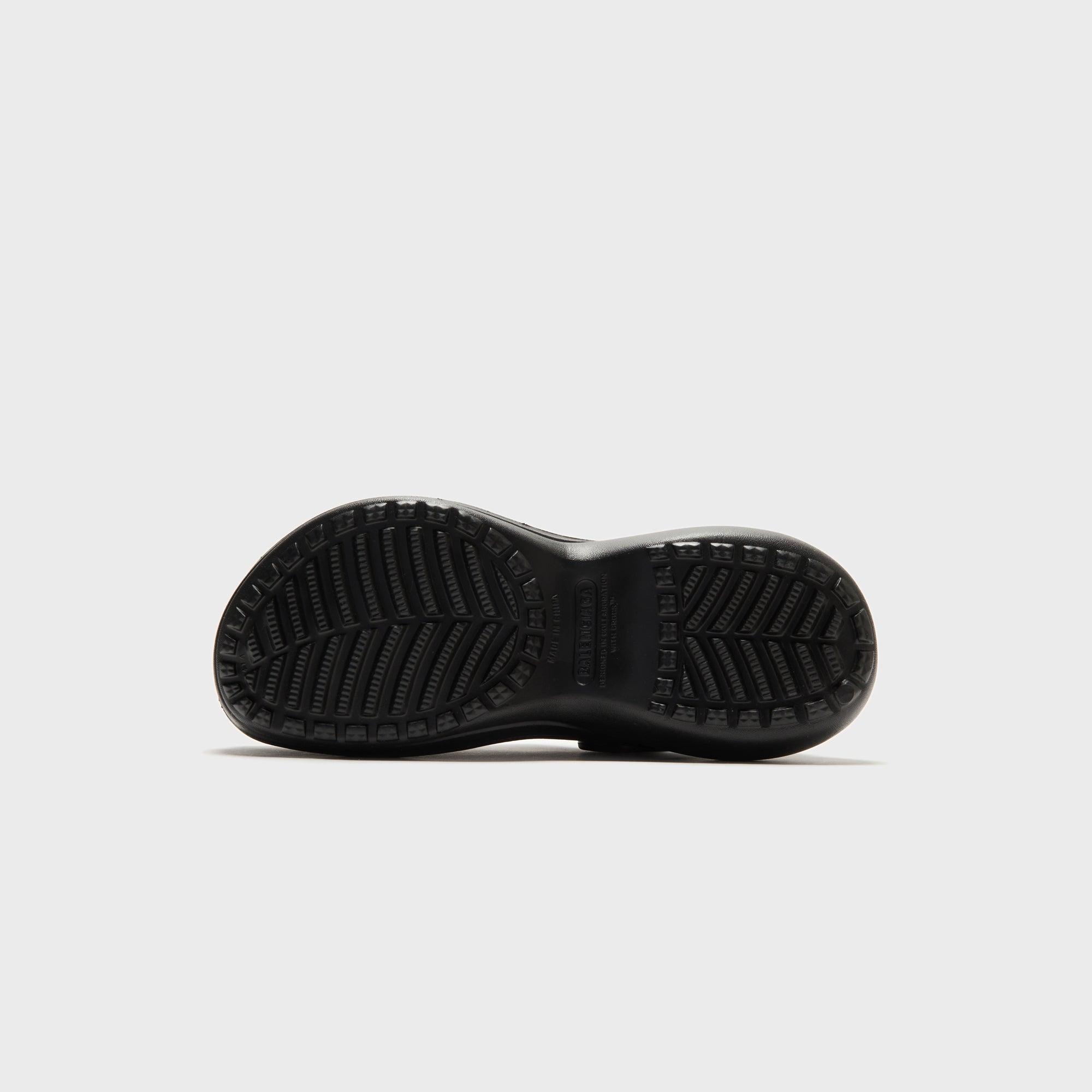 Balenciaga x Crocs Mule silhouette EVA upper Round toe Slip-on Removable Jibbitz™ charms Balenciaga logo embossed on strap Debossed size at back EVA outsole Style: bl720857w0foy1000 Color: Black Material: EVA