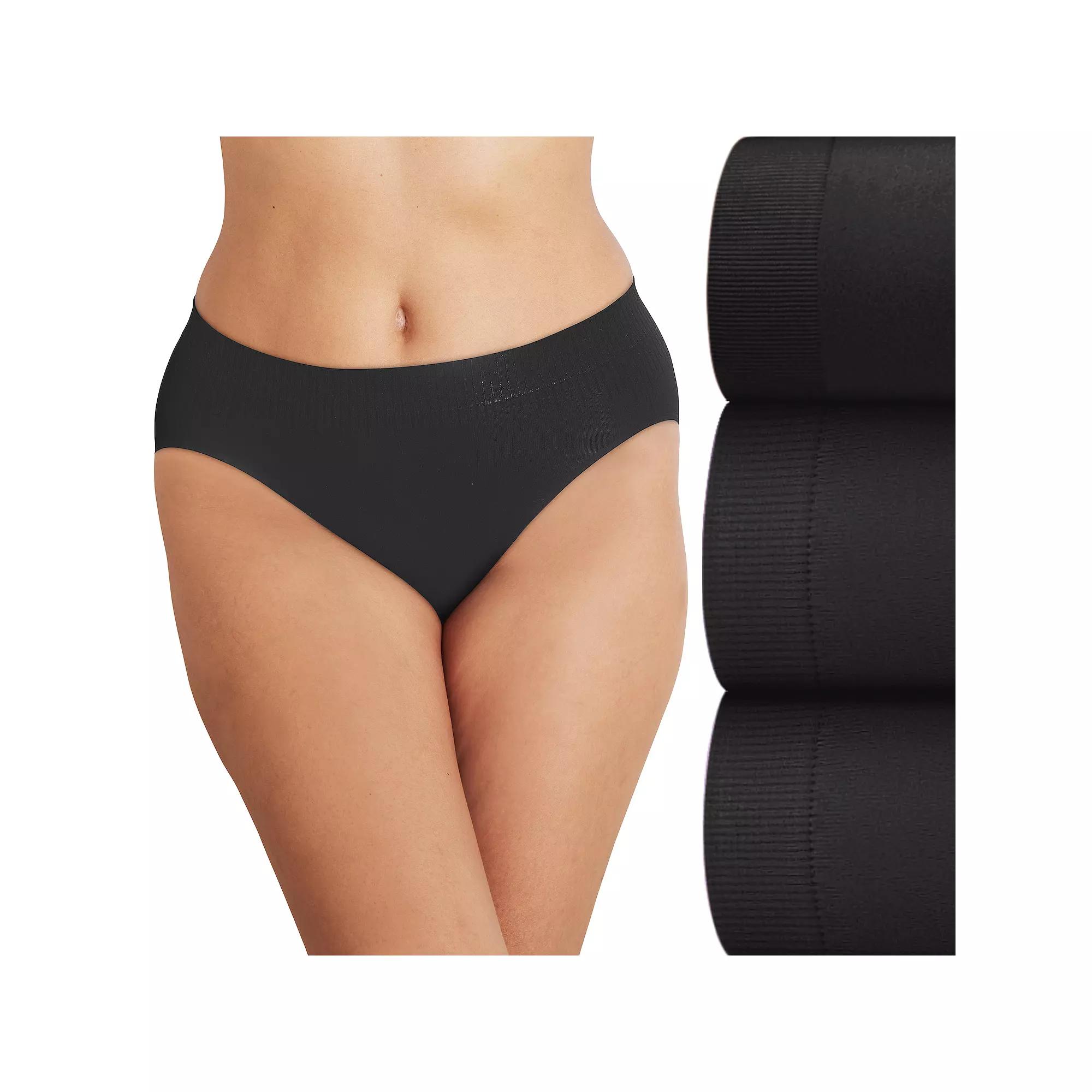 Say bye bye to panty lines and hello to a sleek, smooth look with these womens Bali Comfort Revolution Modern Seamless hi-cut panties. Say bye bye to panty lines and hello to a sleek, smooth look with these womens Bali Comfort Revolution Modern Seamless hi-cut panties. FEATURES 3-pack Hi-cut, full coverage design Cool Comfort fabric that wicks moisture away from skin to keep you cool and comfortable all day long 4-way stretch fabric that moves effortlessly with you for all day comfort Seamless, stretchy design that virtually disappear under clothes Cotton gusset Style DFMSH3FIT & SIZING Midrise sits on the high hipFABRIC & CARE Body & band: nylon, spandex Gusset: nylon, cotton, spandex Hand wash and line dry Imported Size: 5. Color: Black. Gender: female. Age Group: adult.