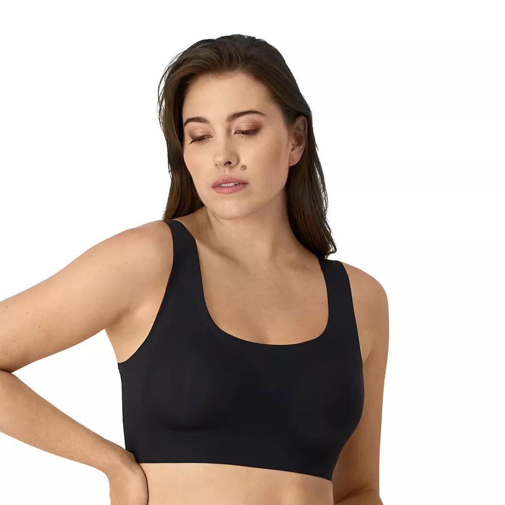 If smooth and sleek are what you seek, this wirefree bra is the perfect choice. Light as air and irresistibly soft, this essential t-shirt bra is crafted from Easylite® fabric that feels silky against the skin. Designed without hardware, this pullover style features fused-edge, flat seams for a seamless look under clothing. Two-ply cups with removable foam inserts and strategically placed support zones offer shaping and coverage, making this full-coverage bra a must-have for everyday comfort. Click on this INTIMATES & SLEEPWEAR GUIDE to find the perfect fit and more! - https://www.kohls.com/feature/womens-sleepwear-and-intimates-guide.jsp. Silky Easylite fabric feels incredibly light and luxuriously soft against your skin, Pullover style bra with no hooks offers smooth, stretchable comfort, Wider straps with the no-slip Comfort-U® design ensure they stay securely in place, Two-ply cups with removable foam inserts and targeted support zones provide added shaping and lift, SmoothTec design features flat, fused edges for a sleek look that virtually disappears under clothing, Cool Comfort® moisture-wicking fabric helps you stay cool and comfortable all day long. FABRIC & CARE: 61% Nylon, 39% Spandex, Hand wash, Imported. Size: X Large. Color: Black. Gender: female. Age Group: adult. Pattern: Solid. Material: NYLON BLEND.