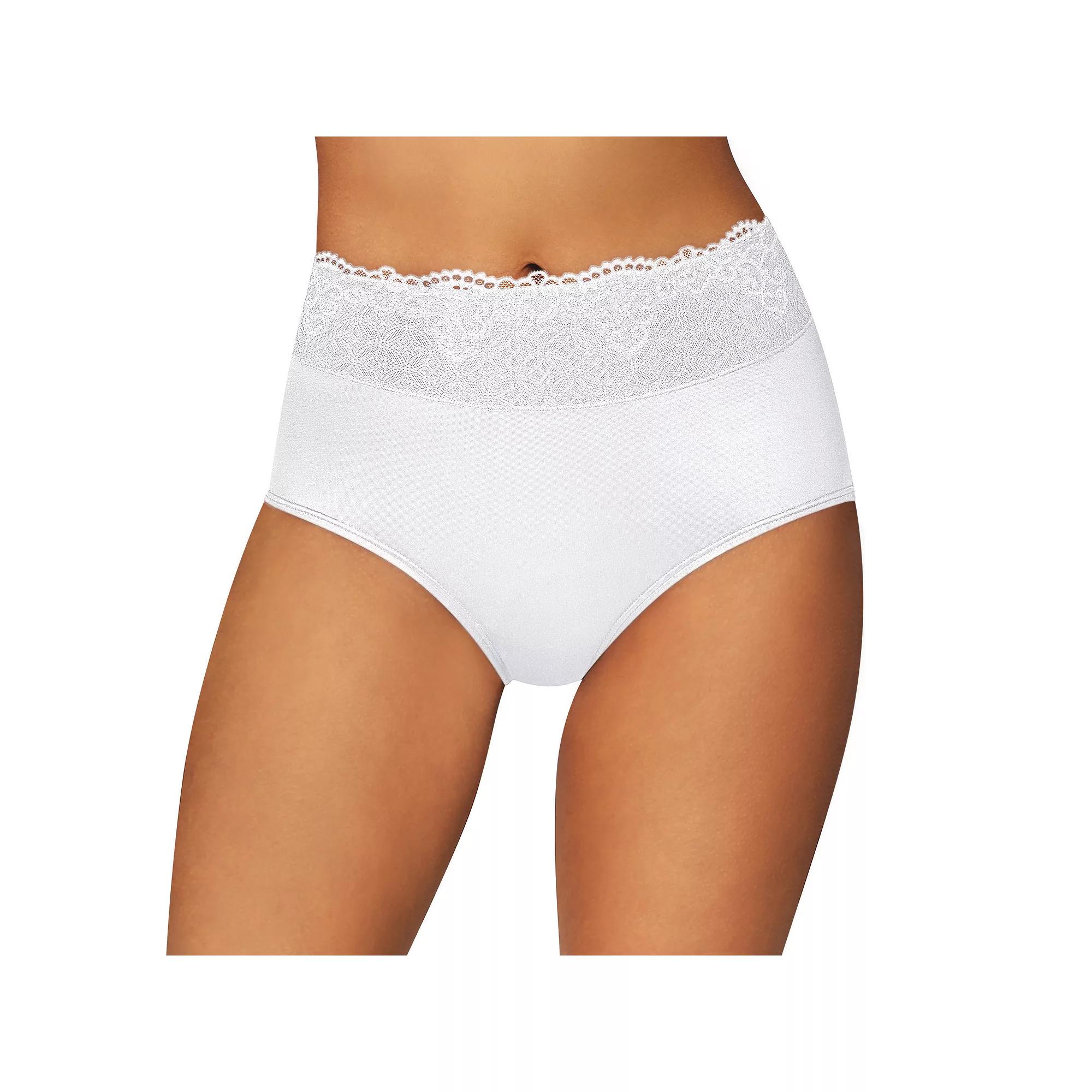 Say goodbye to panty lines! Passion For Comfort® briefs are designed for a smooth, no-show look under your clothes. The seamless, full-coverage design pairs with a Smooth U® waistband that lays flat for ultimate comfort. Crafted from soft microfiber with four-way stretch, these briefs hug your body, maintain their shape, and move with you effortlessly. Click on this INTIMATES & SLEEPWEAR Guide to find the perfect fit and more! - https://www.kohls.com/feature/womens-sleepwear-and-intimates-guide.jsp.. Seamless design eliminates visible panty lines for a smooth look under clothing, Wide, lined lace waistband ensures a no-pinch, no-dig fit, Brief style offers full front and back coverage for comfortable wear, Crafted from soft, smoothing microfiber that gently contours to your body, No-ride-up design stays securely in place, Four-way stretch provides a flexible and comfortable fit, Style no. DFPC61. FIT & SIZING. Brief cut. FABRIC & CARE. 78% Nylon, 22% Spandex. 100% cotton gusset lining, Machine wash, Imported. Bali Women's Single Size Panty Size Chart. Size. 5/S. 6/M. 7/L. 8/XL. 9/2X. 10/3X. Dress/Pant Size. 4 - 6. 8 - 10. 12 - 14. 14 - 16. 16 - 18. 18 - 20. Hip (inches). 36" - 37". 38" - 39". 40" - 41". 42" - 43". 44" - 45". 46" - 47". Size chart is a general guide. It may include sizes that are unavailable for this item. Color: White. Gender: female. Age Group: adult. Material: NYLON BLEND.