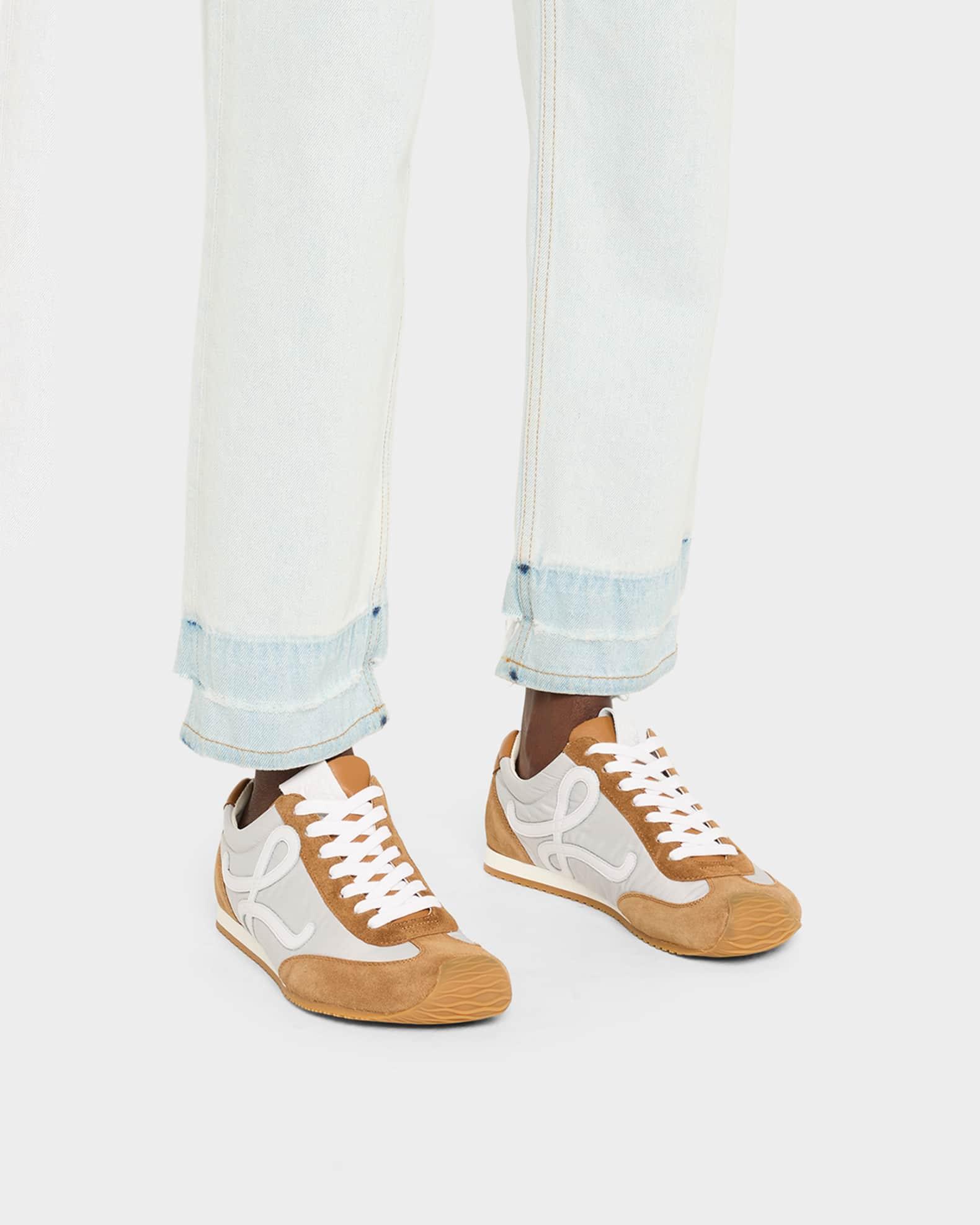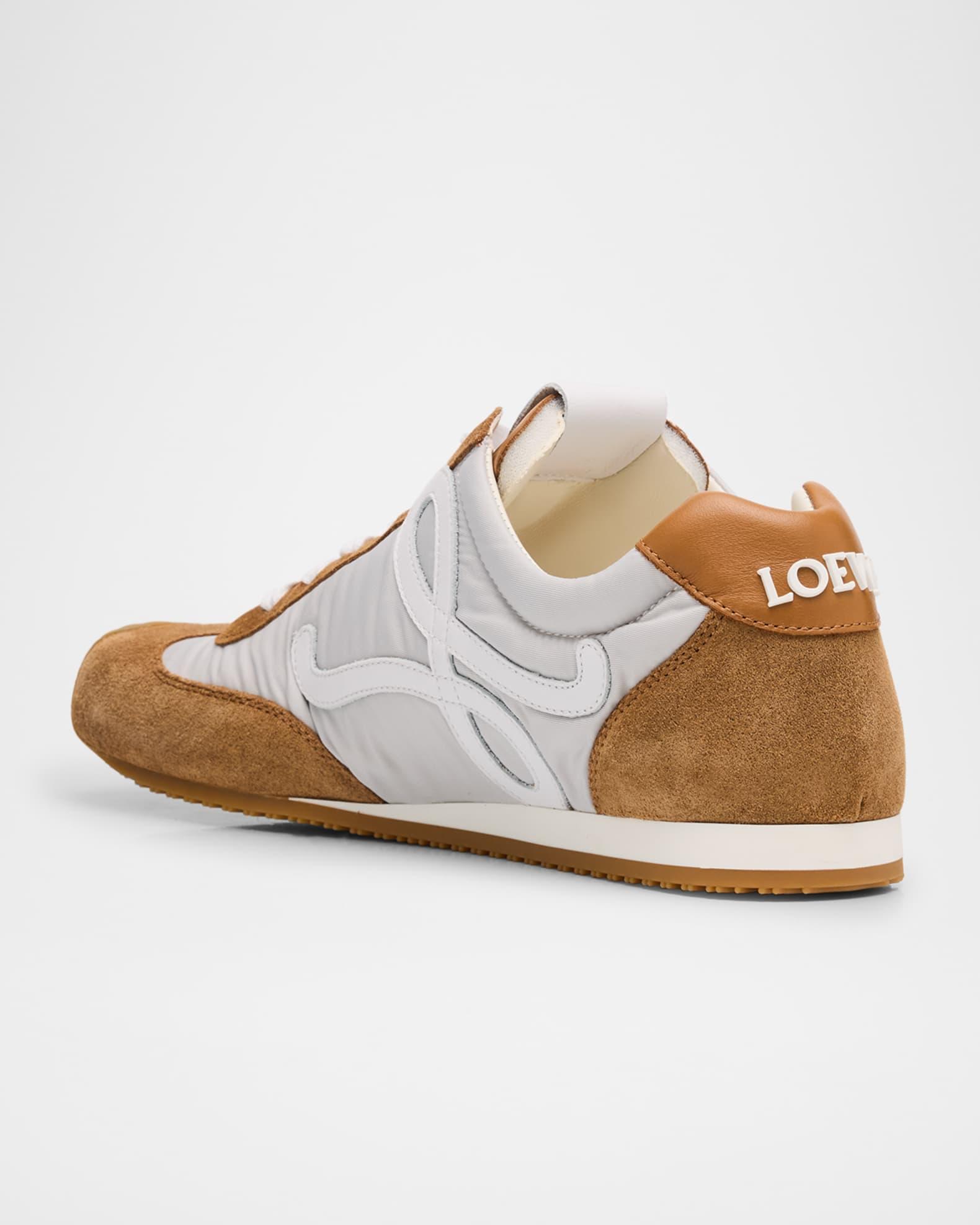 Loewe "Ballet Runner 2.0" sneakers in colorblocked fabric, suede and leather Flat heel Reinforced asymmetrical toe Lace-up vamp Tongue with Anagram logo Padded collar Signature leather L monogram on the sides Lightweight, sturdy TPU outsole Lining: Unlined Made in Italy