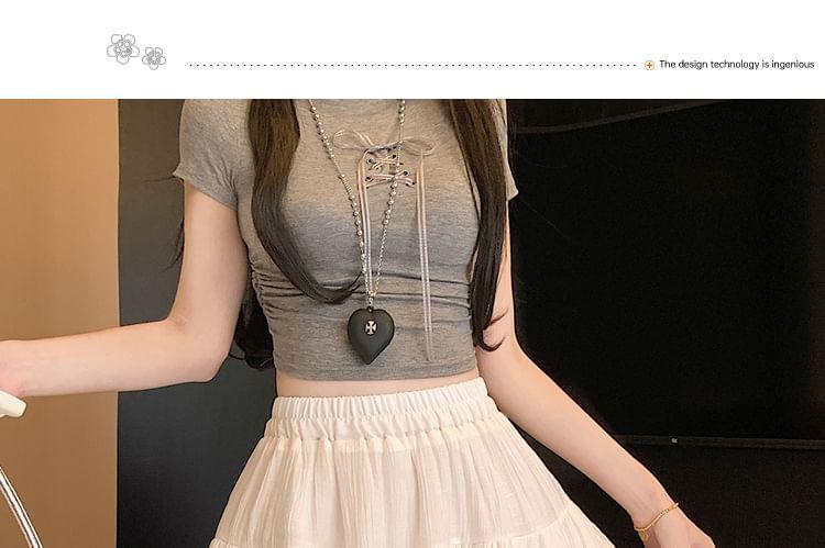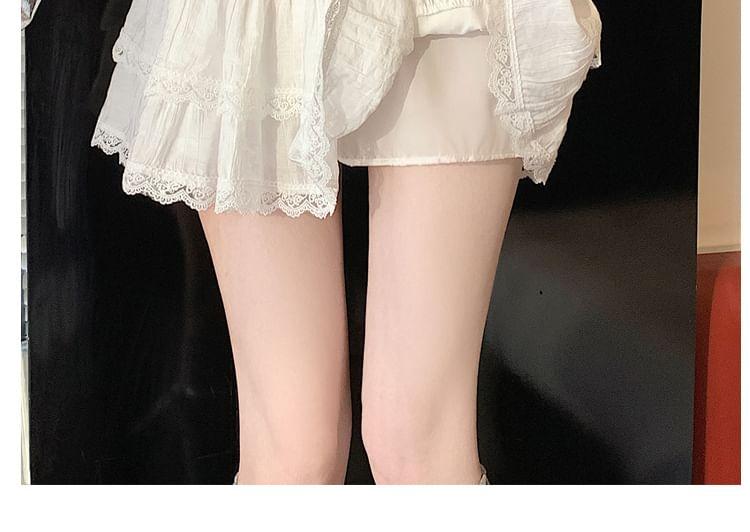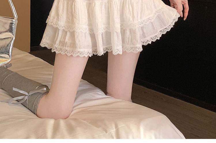 Balletcore Elastic Waist Plain Tiered Lace Trim Mini A-Line Skirt