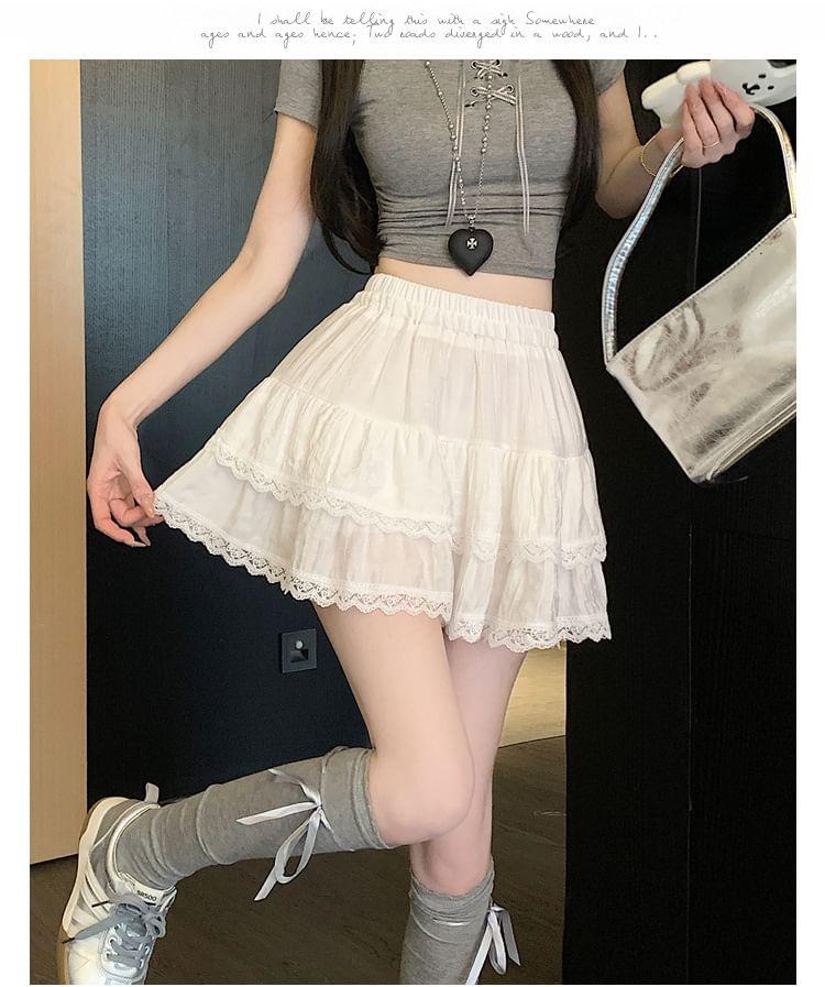 Buy Moon City Balletcore Elastic Waist Plain Tiered Lace Trim Mini A-Line Skirt at YesStyle.com! Quality products at remarkable prices. FREE Worldwide Shipping available!