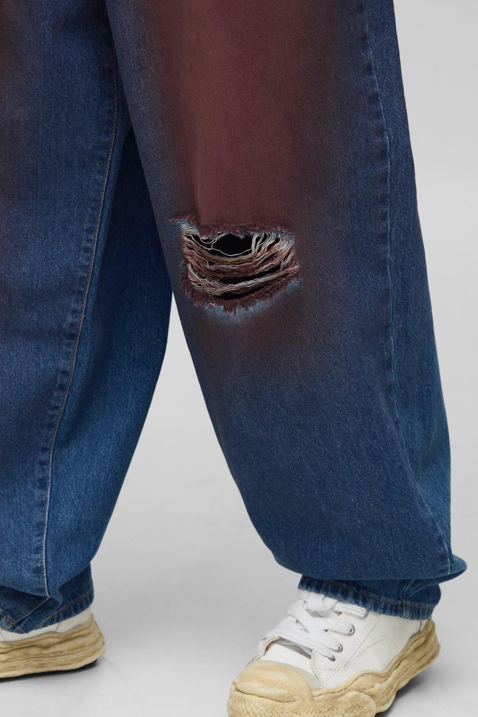 Balloon Fit Ripped Knee Red Tinted Jeans | boohooMAN USA Product Image