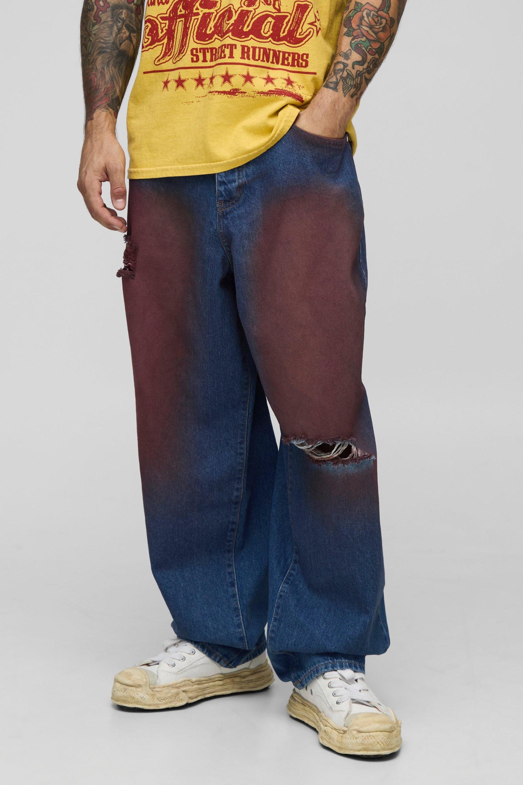 Balloon Fit Ripped Knee Red Tinted Jeans | boohooMAN USA