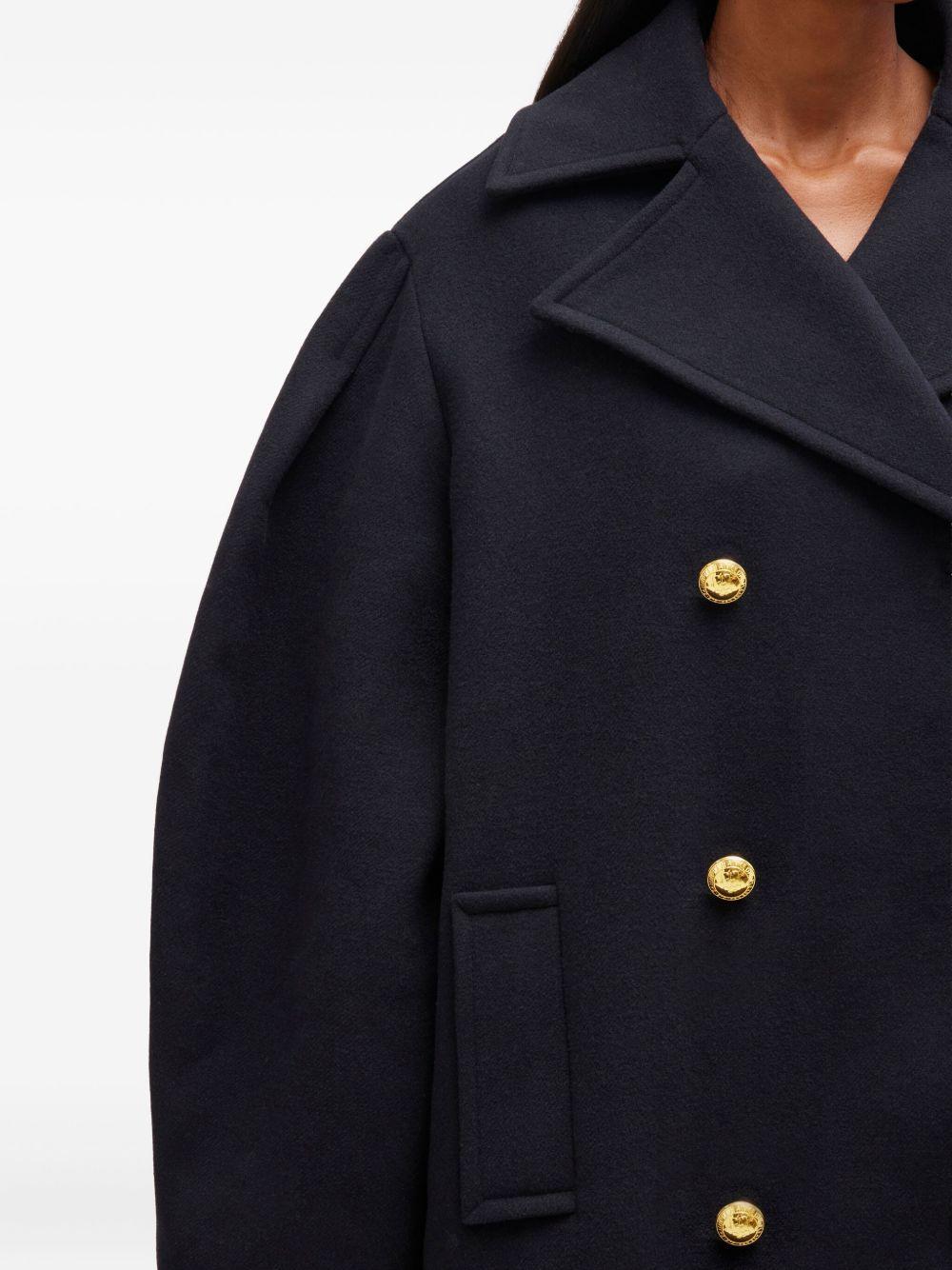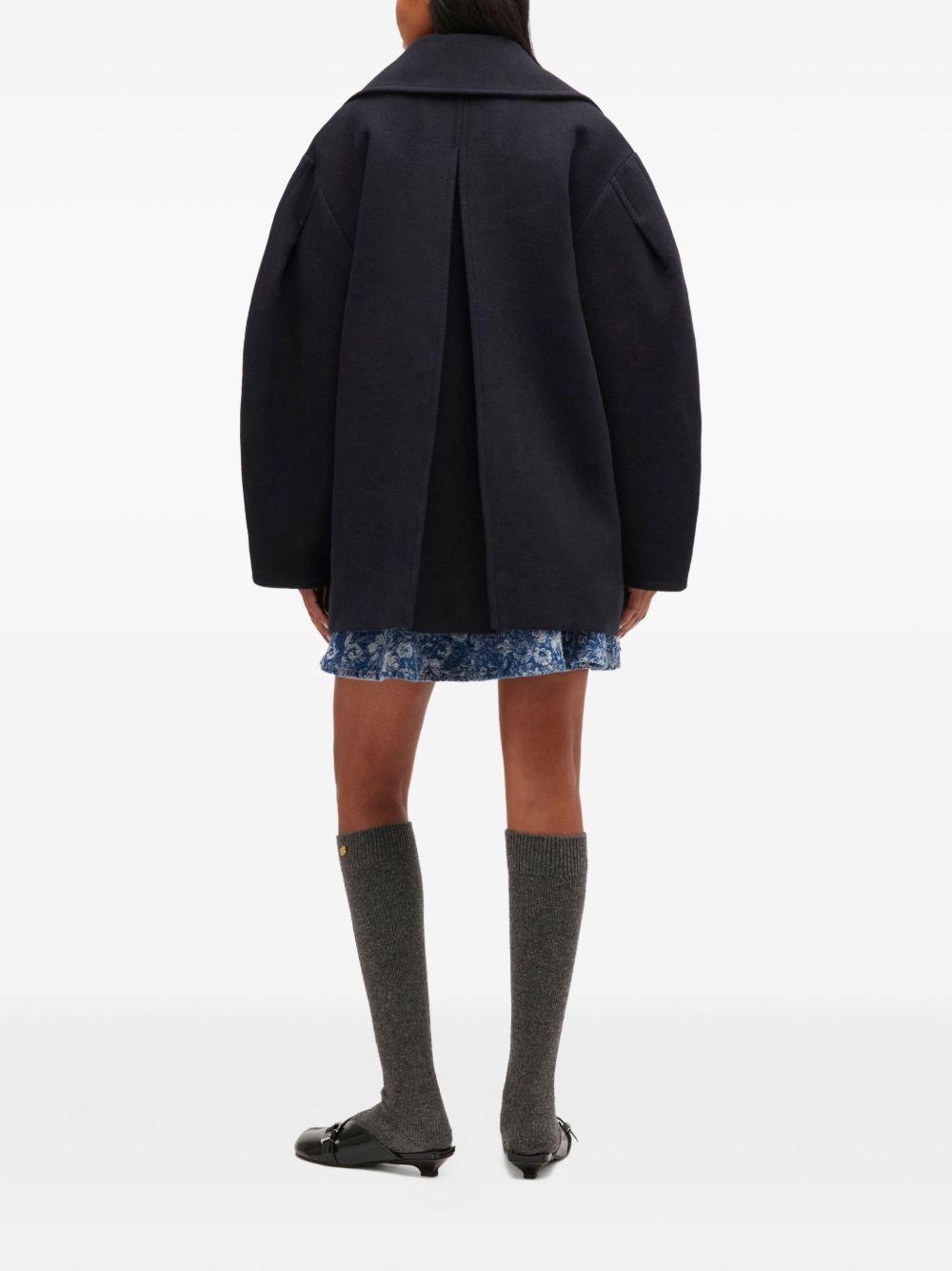 GANNI balloon-sleeve double-breasted coat | Blue | dark blue | balloon sleeves | double breasted | gold-tone buttons | Recycled Wool/Polyester/Cashmere/Nylon | Double Breasted & Peacoats | Coats | Clothing | Women