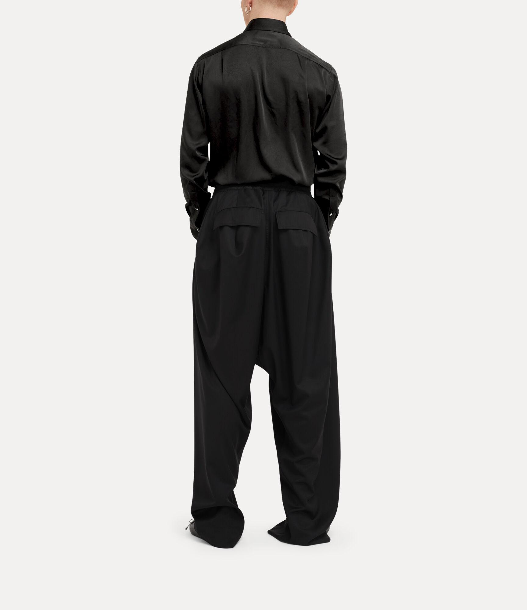Our Balloon trousers have been reimagined this season in a soft wool finish, cut to a high-rise waist with a fluid drawstring closure. A dropped crotch detail flows into a voluminous wide-leg silhouette, while two flap pockets adorn the back.