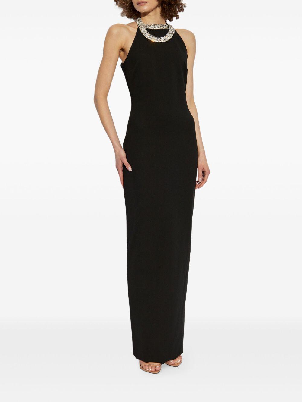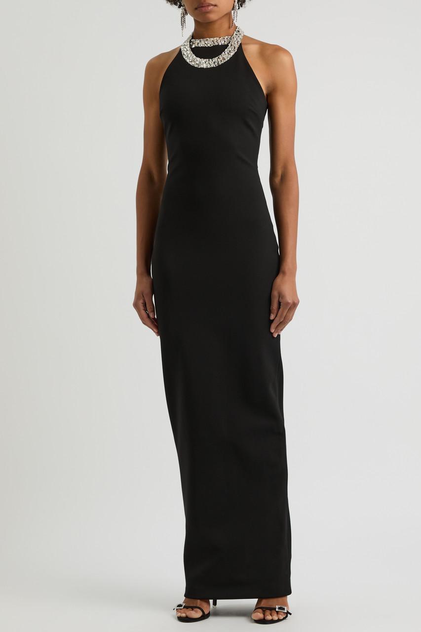 Shop Balmain Faux Pearl-embellished Halterneck Velvet Gown In Black from 800+ stores, starting at $2530. Balmain's gown emulates the iconic outfit Audrey Hepburn wore in the opening scene of Breakfast at Tiffany's . Made from velvet for a figure-skimming fit, it's embellished with faux pearl strands that create the illusion of a layered necklace and drape beautifully along the open back. Keep your styling simple, or add a pair of opera gloves for a truly memorable look.- For Women.