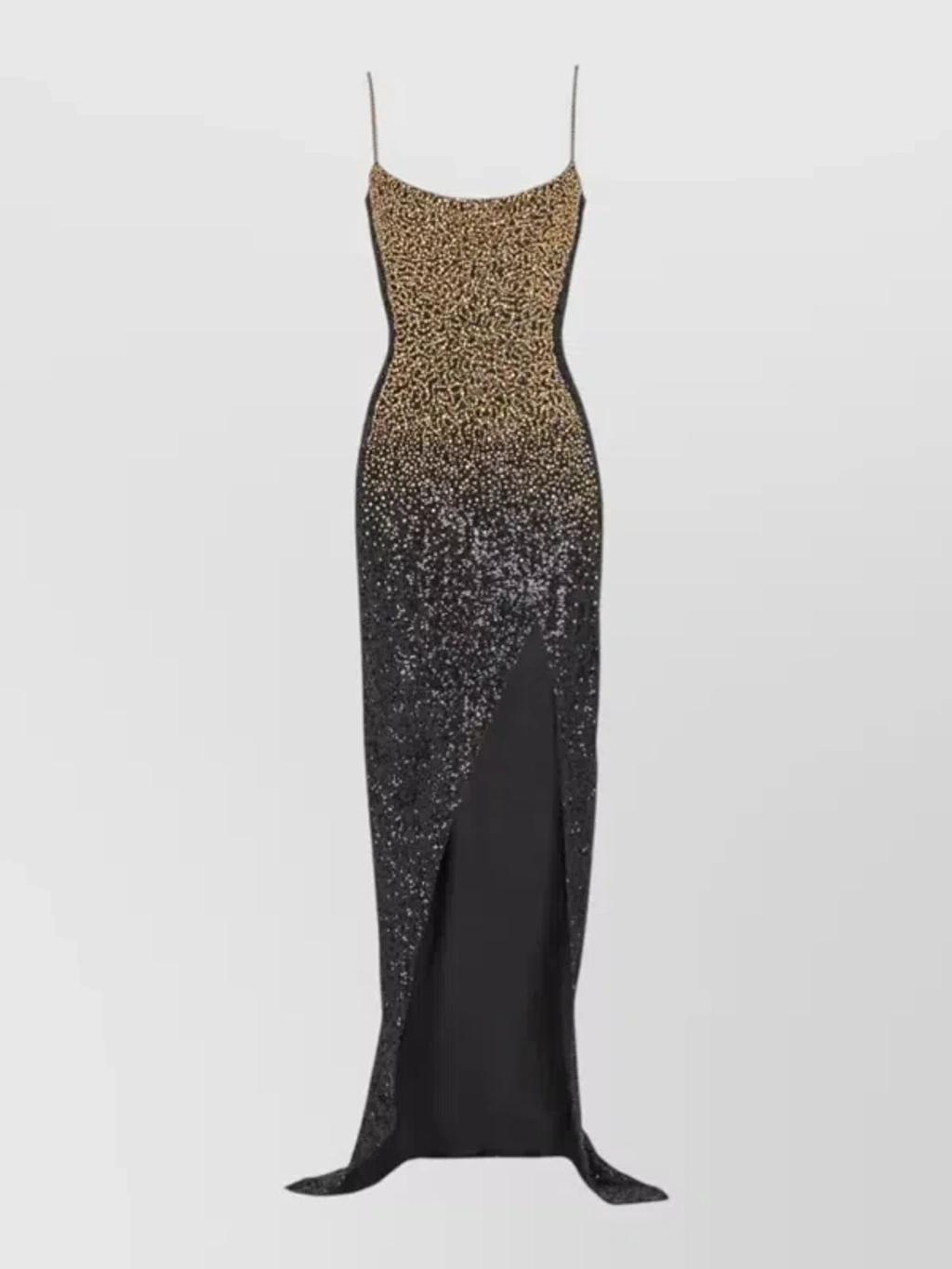 Shop Balmain Long Dress Sequin Embroidery Spaghetti Straps In Multi from 850+ stores, starting at $5187. Info & Care Balmain stretch-polyamide;gown Embellished, square-neck, side split at hem, fully lined Zip fastening at back 97% polyamide, 3% elastane; fabric 2: 77% acetate, 23% viscose; lining: 96% silk, 4% elastane Dry clean Size & Fit Length shoulder to hem: 60 inches/ 152.5cm Midweight Slim fit Model is 5'9"/ 175cm and wears a size;FR36