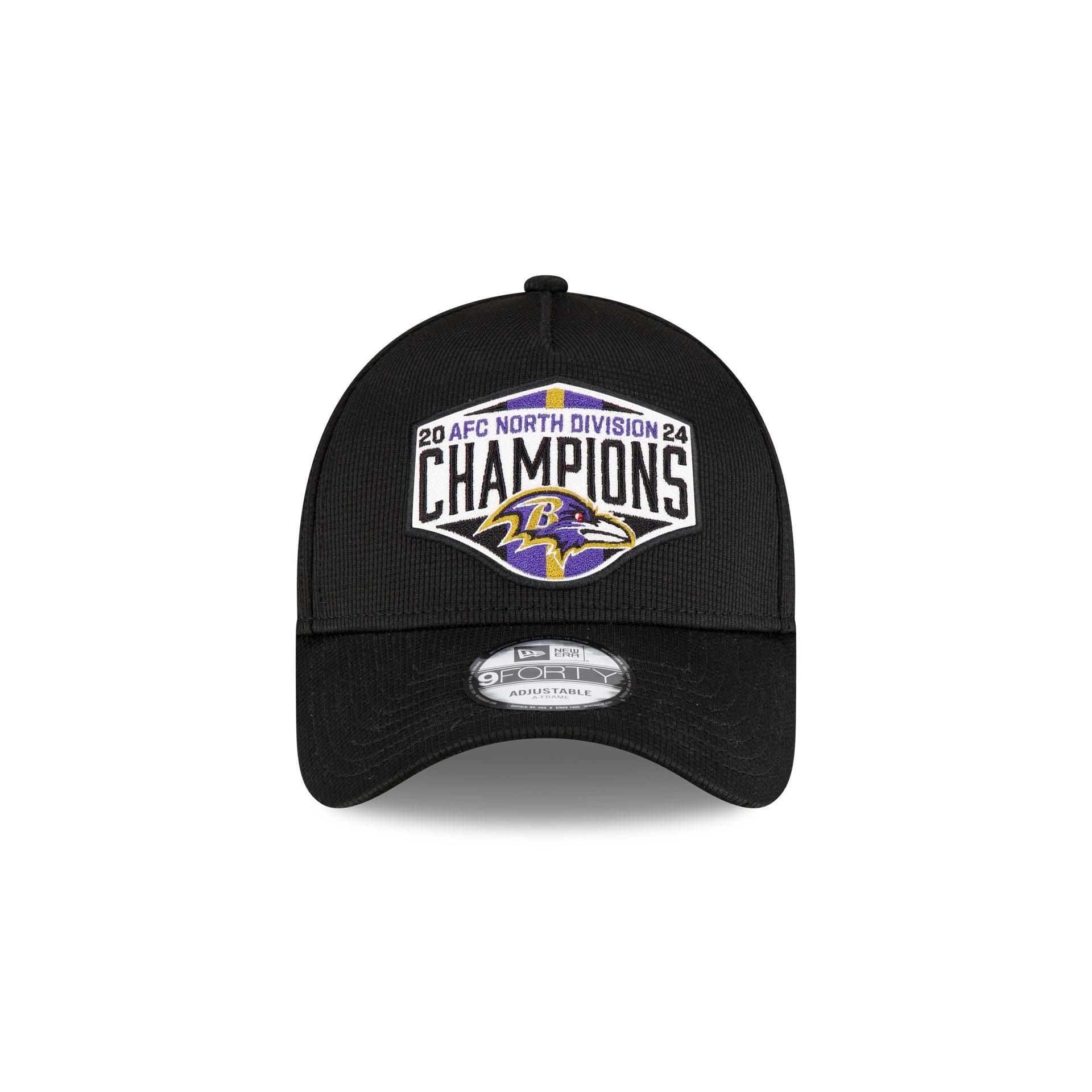 Commemorate your team's regular season performance with the Baltimore Ravens 2024 Division Champions Locker Room 9FORTY A-Frame Snapback featuring an embroidered Ravens AFC North Division Champions logo at the front panels, a gray undervisor, and a snapback closure at the rear.