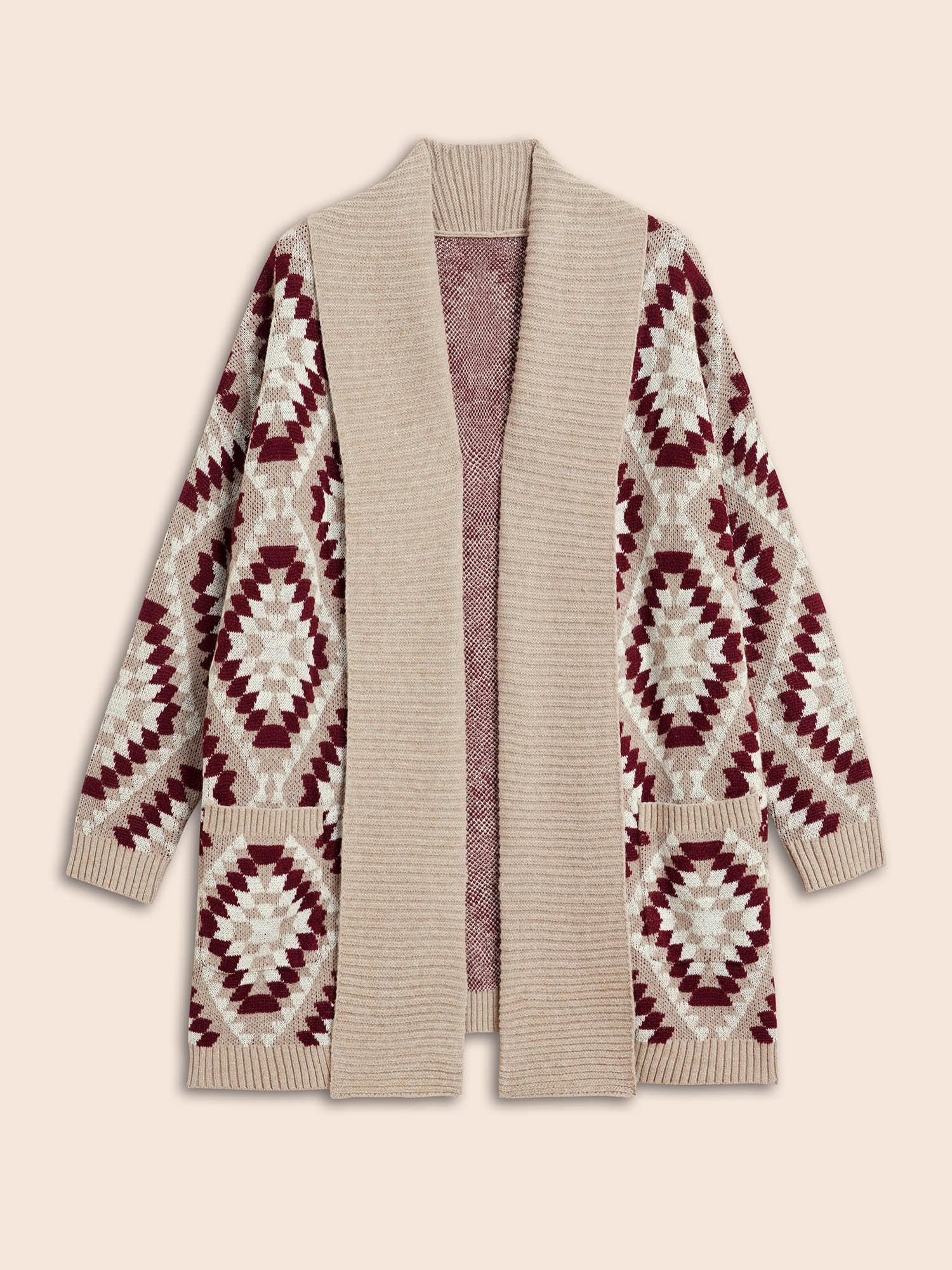 Shop Bandana Geometric Lapel Collar Cardigan now and redefine your style with confidence at BloomChic. Tailored for mid and plus-size women. This trendy Sweaters Cardigans Women, sizes 10-30. Season:Winter;Color:LightBrown;Style:Casual Everyday;Neckline:Non;Sleeve Type:Drop shoulder sleeve;Prints:Plaid;Details:Texture;Pocket:Patch pocket;Snap Fastener:No-snap fastener;Belt:No-belt;Closure Type:Open front without closure