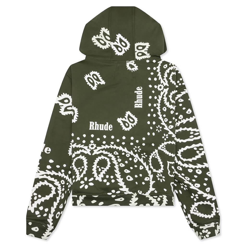 The Rhude Bandana Hoodie elevates casual comfort with a distinctive design detail. Made from 100% heavyweight cotton, this long-sleeve hoodie features an all-over bandana motif print. Dropped shoulders and a kangaroo front pocket enhance the relaxed silhouette, while one-of-one print distressing ensures each piece is uniquely crafted. 100% heavyweight cotton Long sleeve Bandana motif pattern print throughout Kangaroo front pocket Dropped shoulders Style No: RHPS25HO100120024 PS25HO100120024