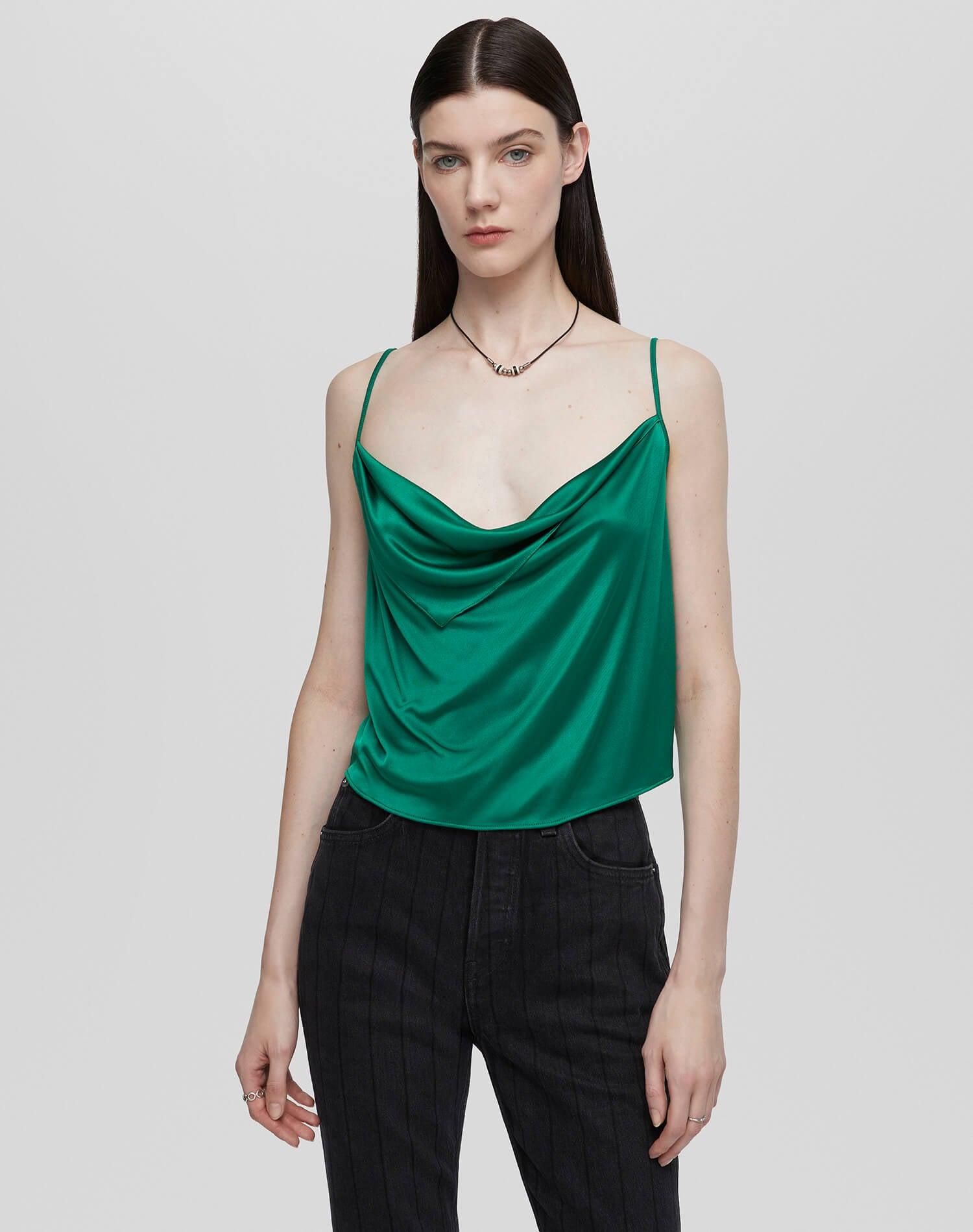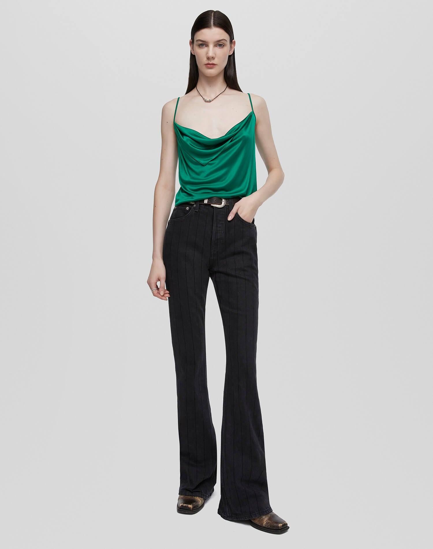 All Surplus Sale styles are final sale and cannot be returned.The Bandana Party Top is a spaghetti strap top with a scooped neckline, creating a draped effect on the front. Styled With The Riding Jean in Night Rider