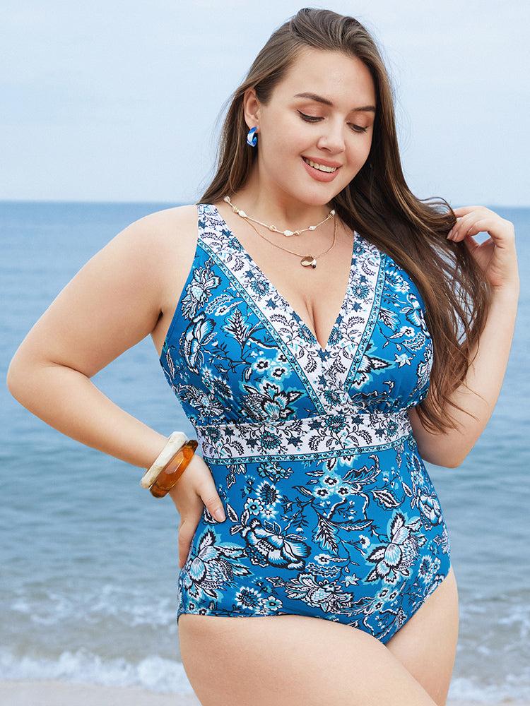 Shop Bandana Print Sculpt Waist Adjustable Straps One Piece Swimsuit now and redefine your style with confidence at BloomChic. Tailored for mid and plus-size women. This trendy Swimwear Women, sizes 10-30. Season:Spring;Color:Cyan;Bra Type:Wireless;Coverage:Full;Neckline:Deep V-neck;Sleeve Type:Sleeveless;Details:Printed, Tummy control, Adjustable Straps;Pocket:No-pocket;Belt:No-belt;Chest pad:Removable Padding;Lining:Lining