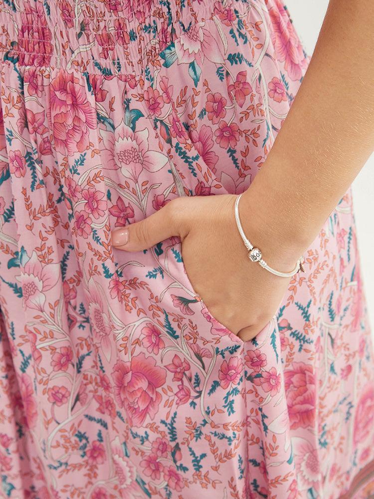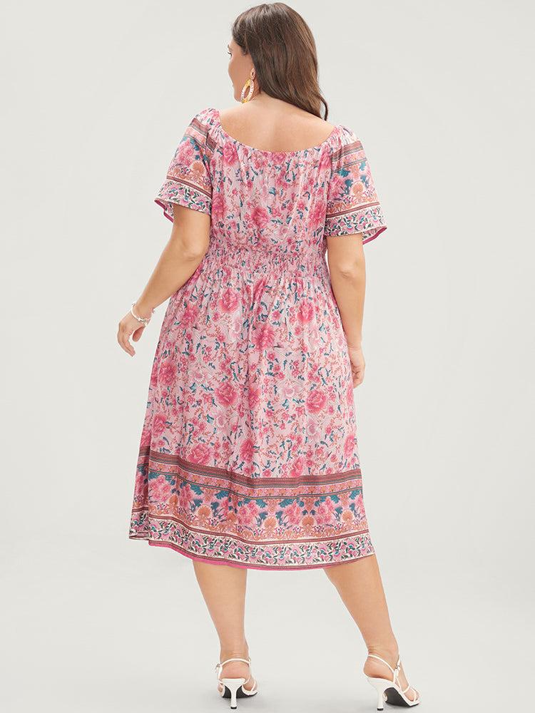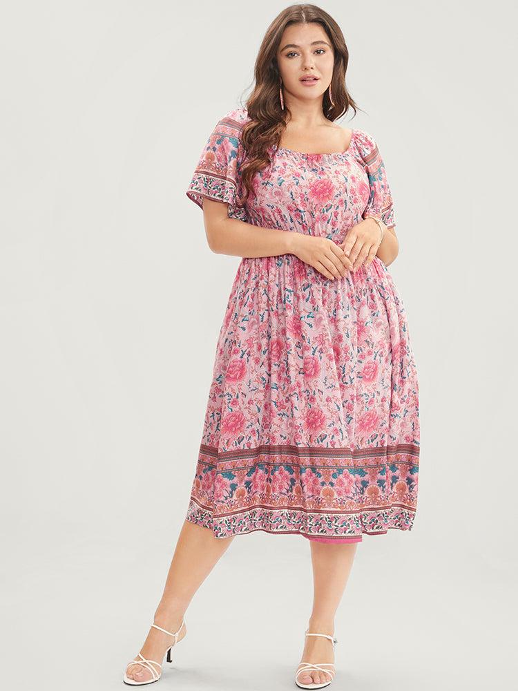 Shop Bandana Print Square Neck Pocket Ruffles Shirred Dress now and redefine your style with confidence at BloomChic. Tailored for mid and plus-size women. This trendy Dress, sizes 10-30. You can never go wrong with BloomChic Dresses. Color:Pink;Neckline:Square Neck;Sleeve Type:Raglan sleeve;Details:Pocket;Pocket:It is perfectly sized to carry a phone.;Belt:No-belt