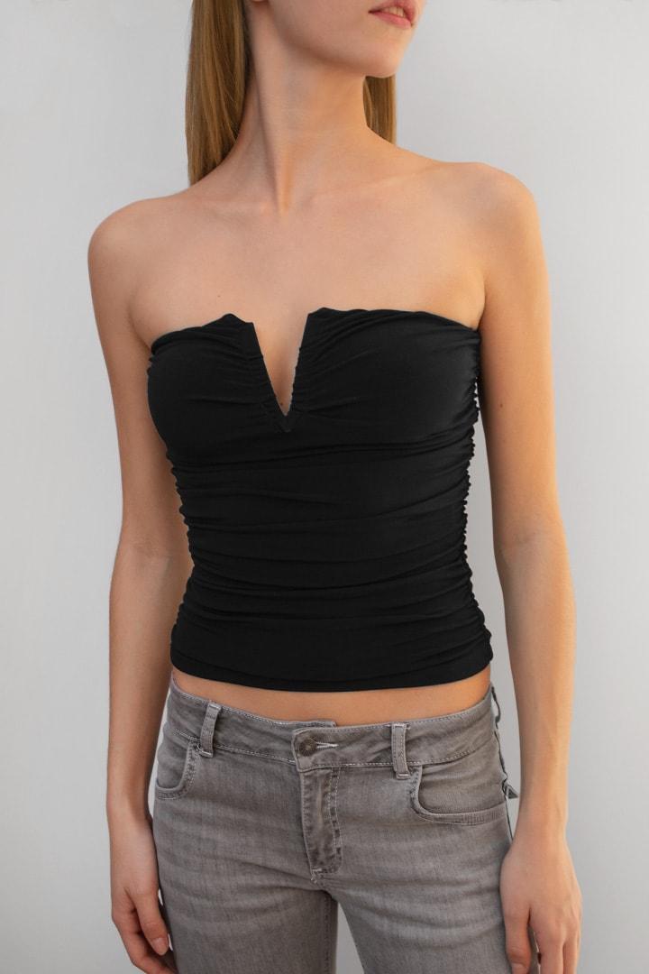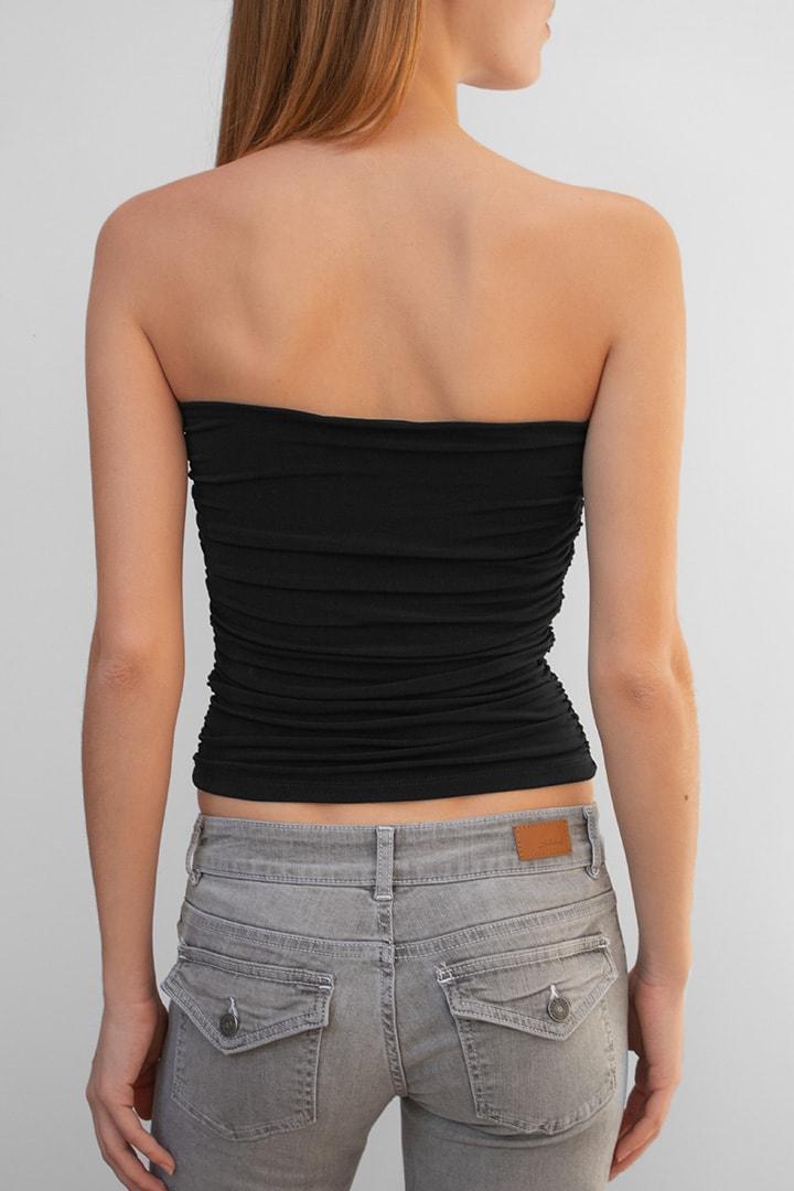 Embellished Cut-Out Bandeau Bikini Top in Black