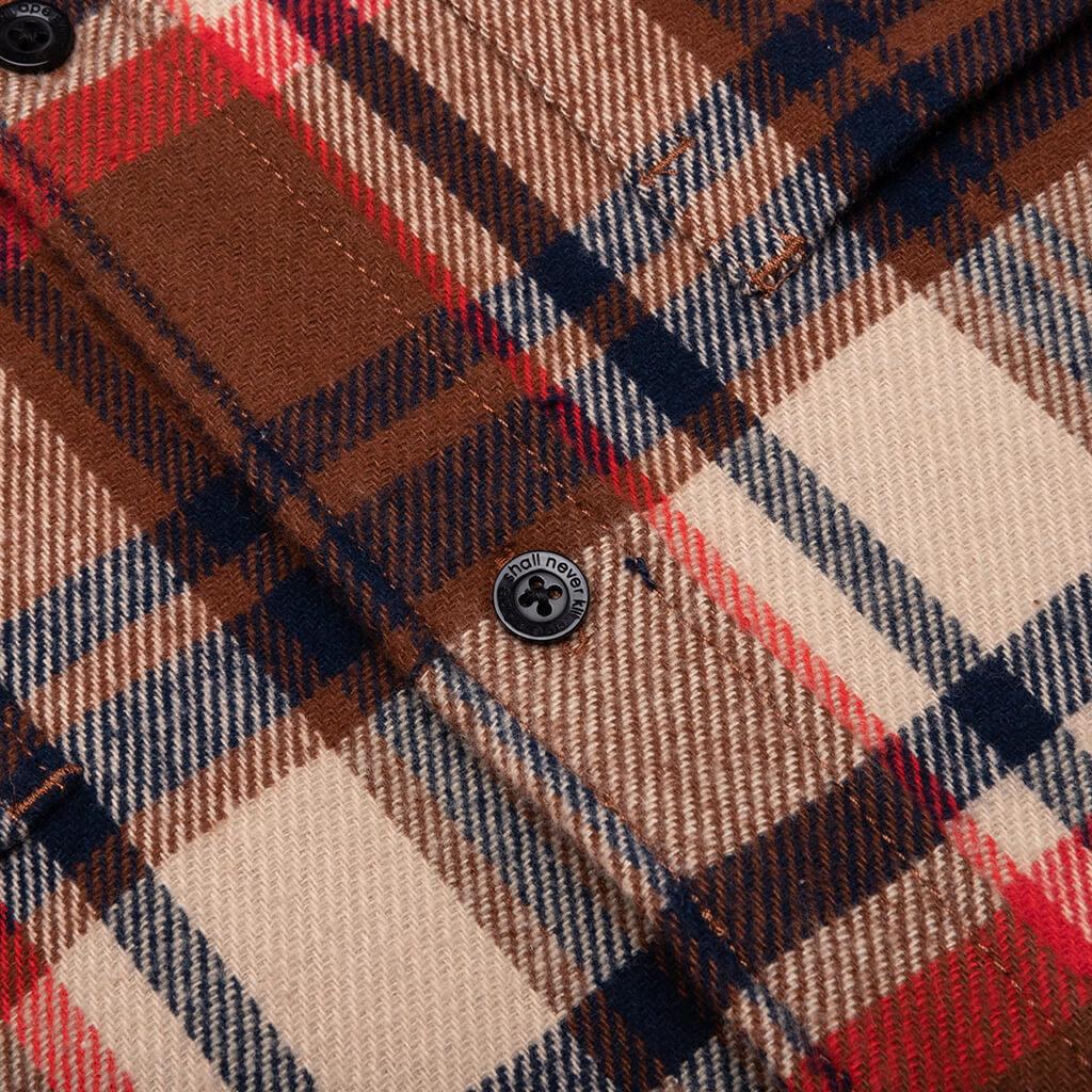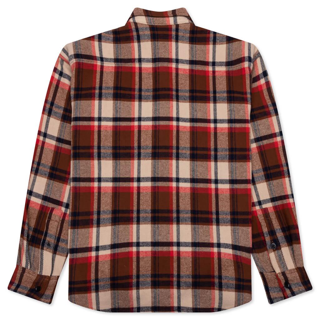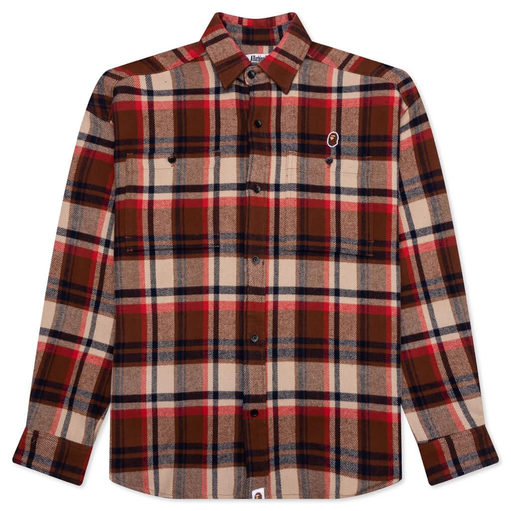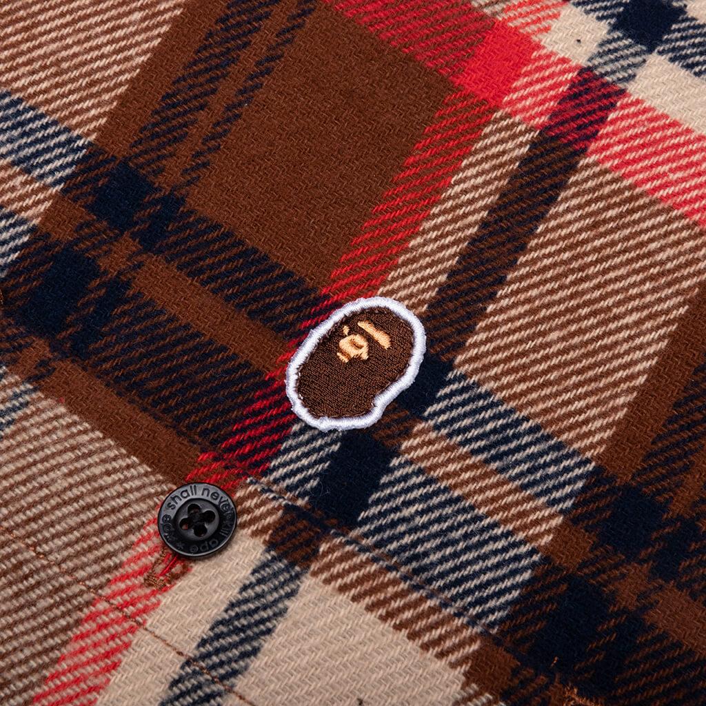 BAPE introduces the Check Ape Head One Point Flannel Shirt in their new collection. The warm-weather garment has a cotton construction and gives an elevated aesthetic to your rotation of flannels. Understated A Bathing Ape branding decorates the chest and the back shoulder yoke. Finishes include a pointed collar, button cuffs + a curved hem. 100% Cotton Flannel design Pointed collar Button front closure Button cuffs Curved hem Shoulder yoke BAPE branding Style No: 001SHJ801056IRED
