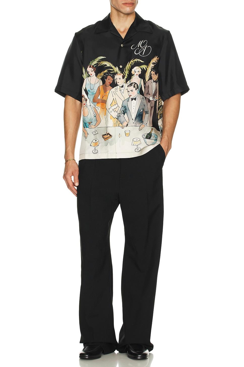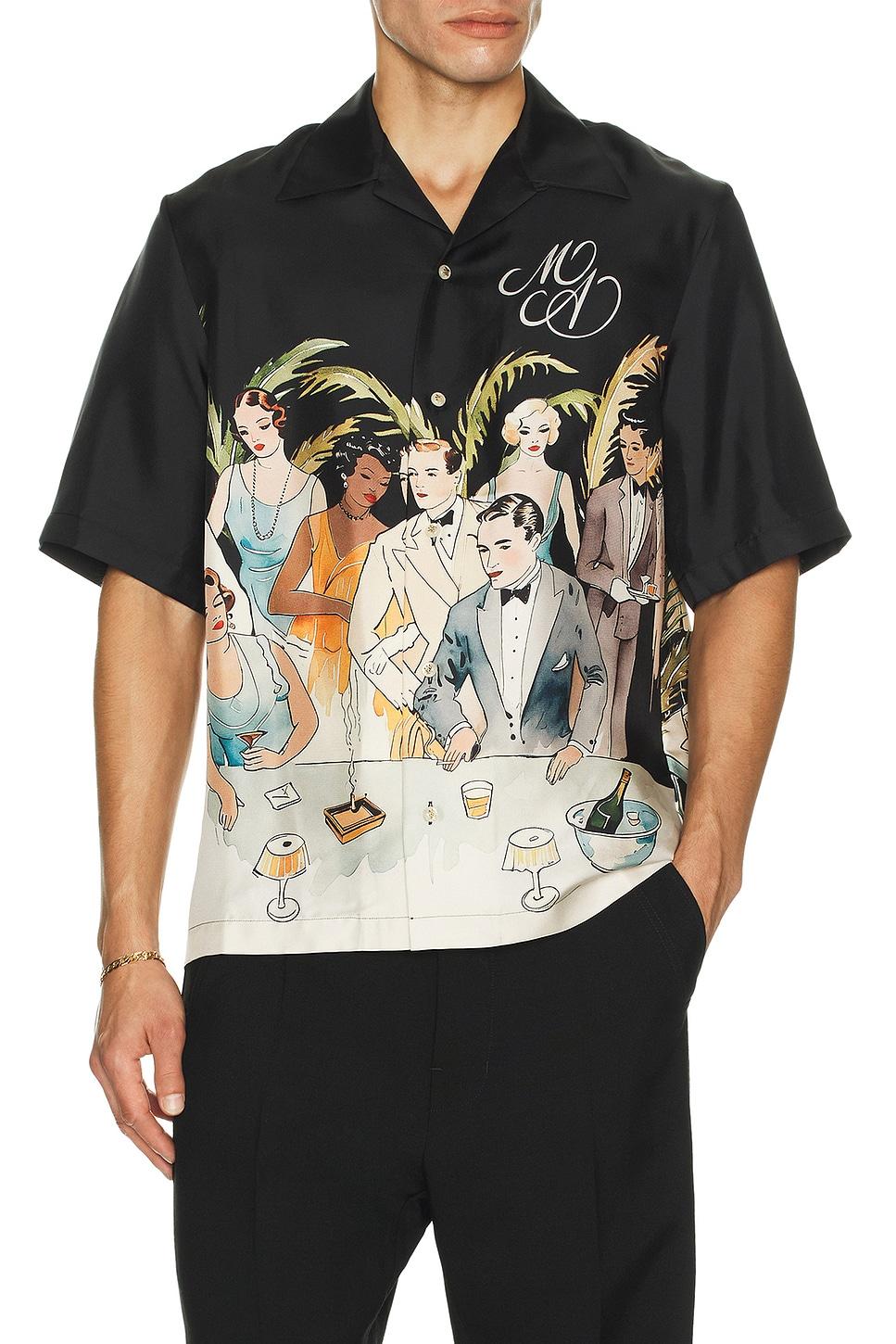 bowling shirt100% silk / Dry clean only / Front button closure / Graphic detail throughout / Midweight satin fabric / Made in Italy / Our Style No. AMIF-MS492 / Manufacturer Style No. AMSTCA1192 / Model is wearing size M.