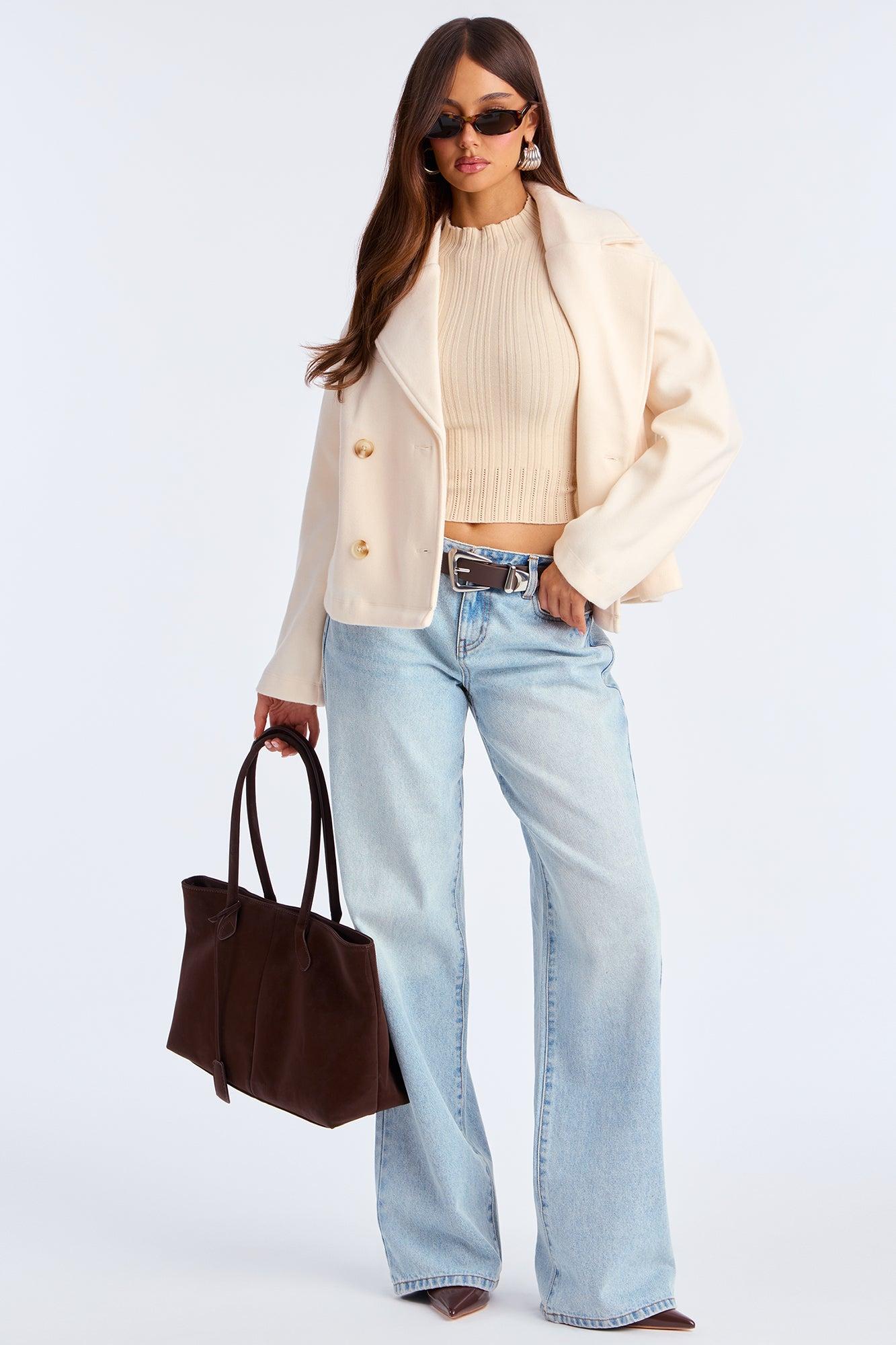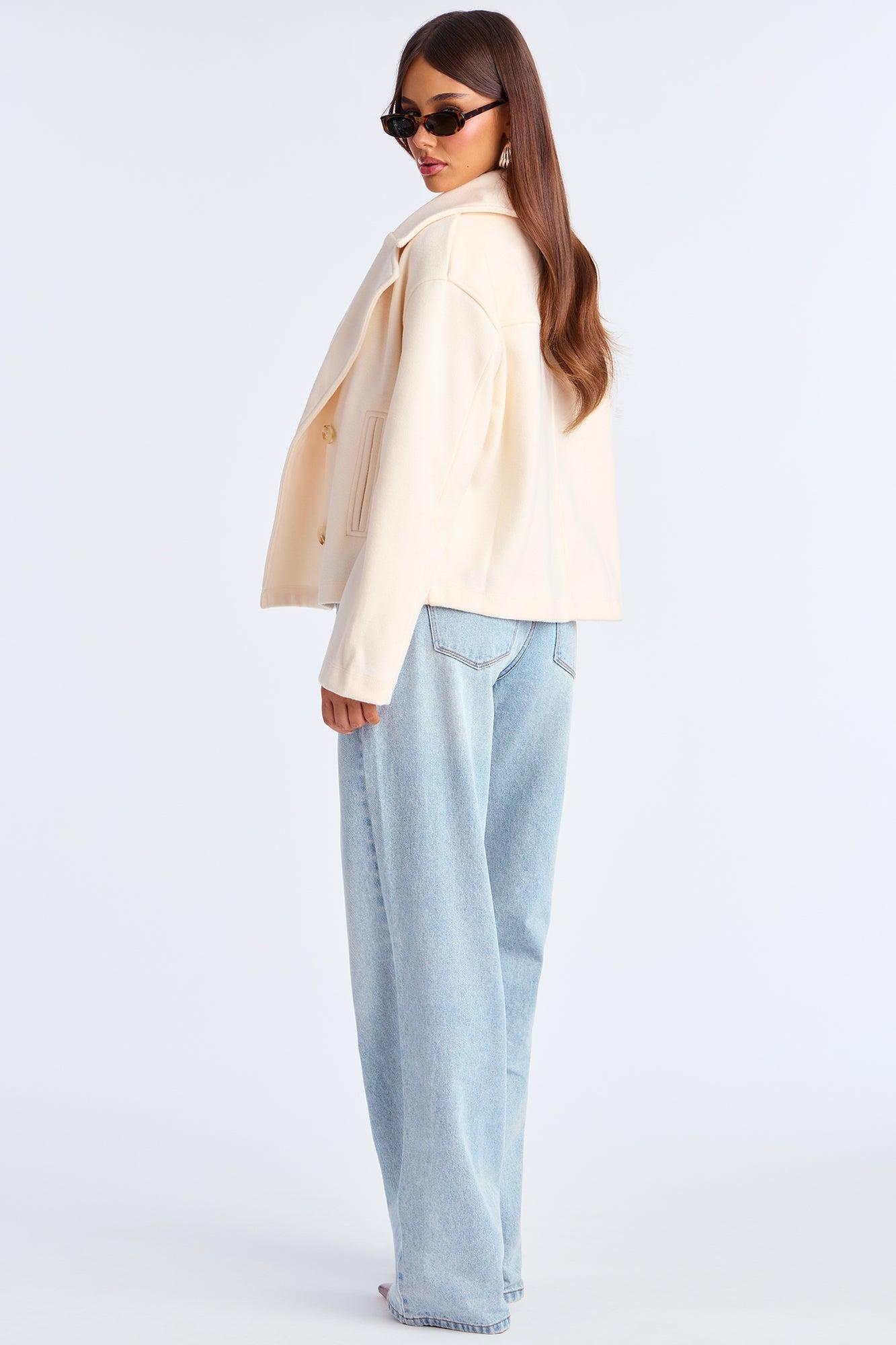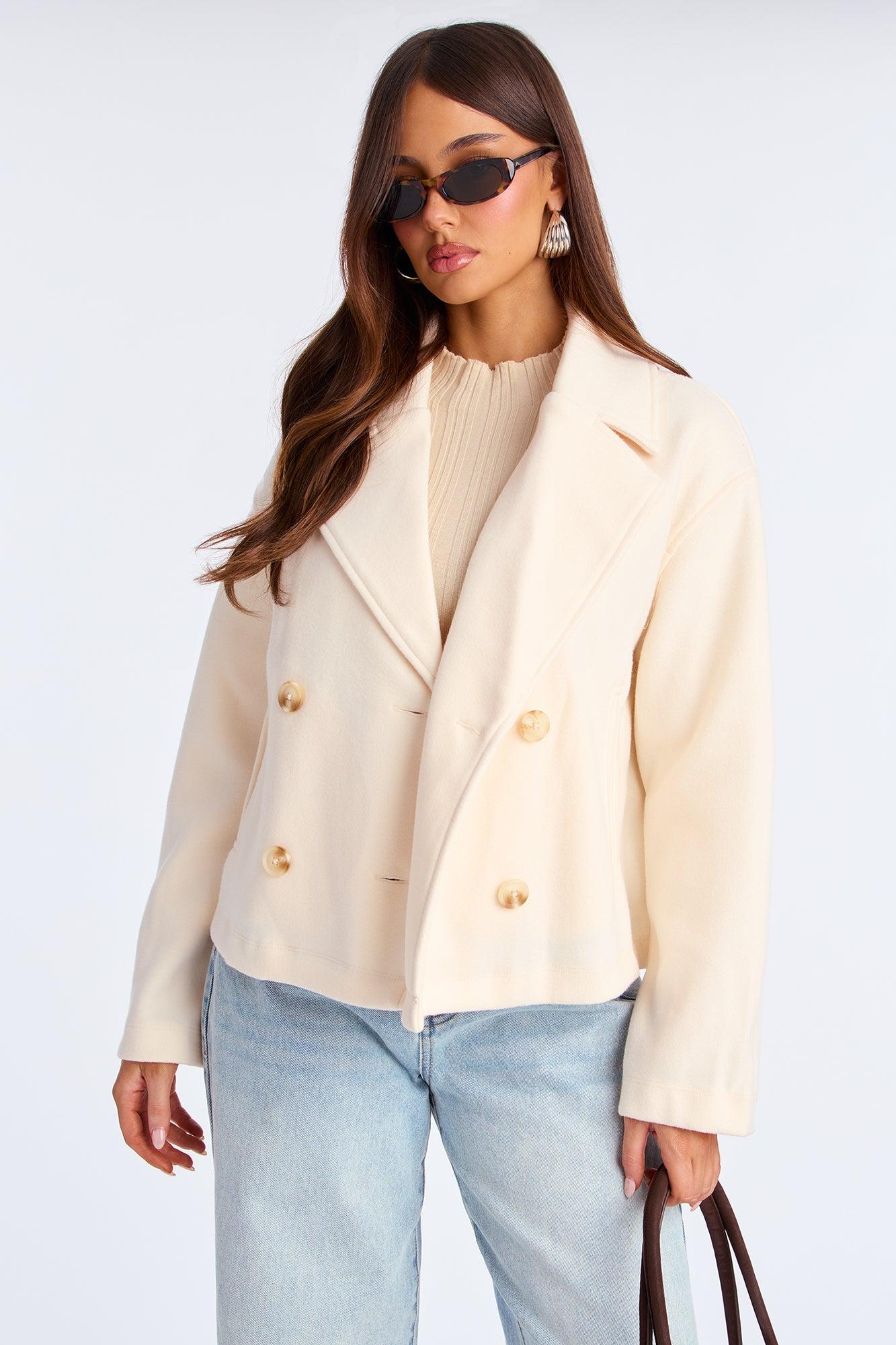 Barbara Cropped Double Breasted Coat - Cream Female