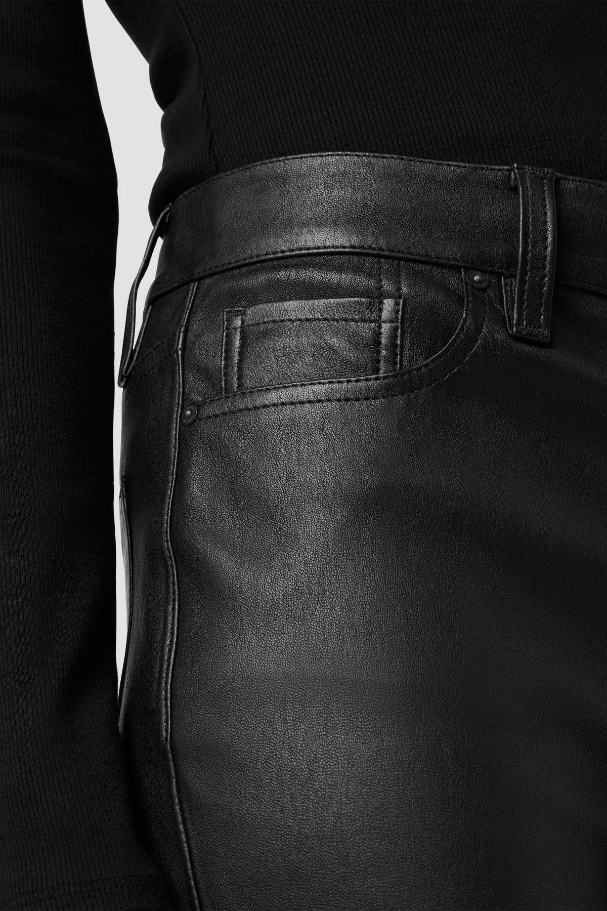 Description Our Barbara High-Rise Super Skinny Ankle Leather Pant in Black features a slim, contoured fit, an elevated waistline, and a clean finished hem. Made from soft genuine leather with just enough comfort stretch. Product Details Front Rise: 10.25", Leg Opening: 10", Inseam: 28"Model Height 5'9"Model wearing size 25Measurements based on size 27 Fit & Care Content: 100% Lamb LeatherCare of Leather Specialist Only