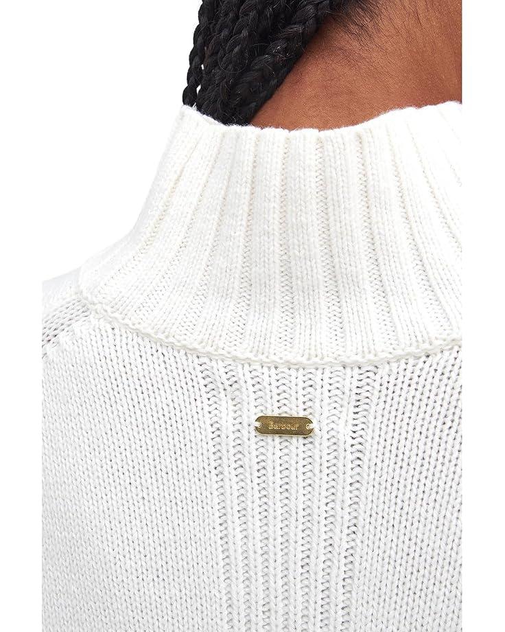 Feel warm and cozy vibes wearing the Barbour® Barbour Serena Knitted Jumper. This pull-on style, knit jumper features a funnel neck, dropped shoulders, long sleeves with ribbed cuffs, and a straight wide, ribbed hem with side splits for absolute ease of movement.