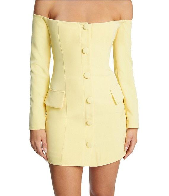 Bardot Iria Off-The-Shoulder Neck Long Sleeve Button Front Bodycon Mini Dress