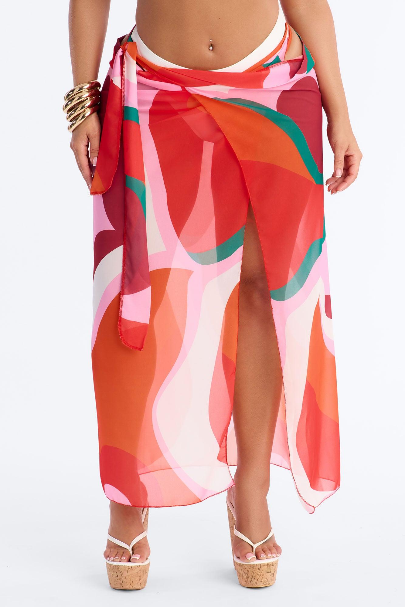 Barefoot On The Sand Geometric Swim Cover Up Sarong - Multi Color Female