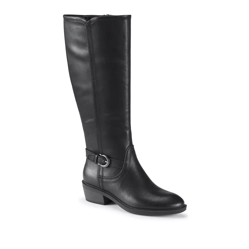 Go from city streets to country escapes with the Baretraps Nena Riding Boots, your go-anywhere tall boot. With features like a cushioned insole and a block heel for stability, these knee-high wonders make sure your feet feel fabulous as you dash through your day, all while looking like you just stepped out of a fashion magazine. Click this FOOTWEAR GUIDE to find the perfect fit and more! - https://www.kohls.com/feature/shoesizeguide.jsp. FEATURES: Versatile and practical design, Inside zipper closure for easy entry and exit, Cushioned insole for superior support and shock absorption, Lightweight and flexible outsole for excellent traction, Microfiber footbed wicks away moisture, Block heel for fashionable look and reliable stability. FIT & SIZE: Wide tall boot shaft, Boot shaft height of 14.75 inches, Boot shaft circumference of 14.87 inches and 16.88 inches. MATERIAL & CARE: Manmade upper, Manmade outsole, Textile and manmade lining, Polyurethane footbed, Spot clean. DETAILS: Zipper closure, Slip-resistant outsole, Round toe, 1.5-in. heel, Imported. Size: 9 Wc. Color: Black. Gender: female. Age Group: adult. Material: SYNTHETIC.
