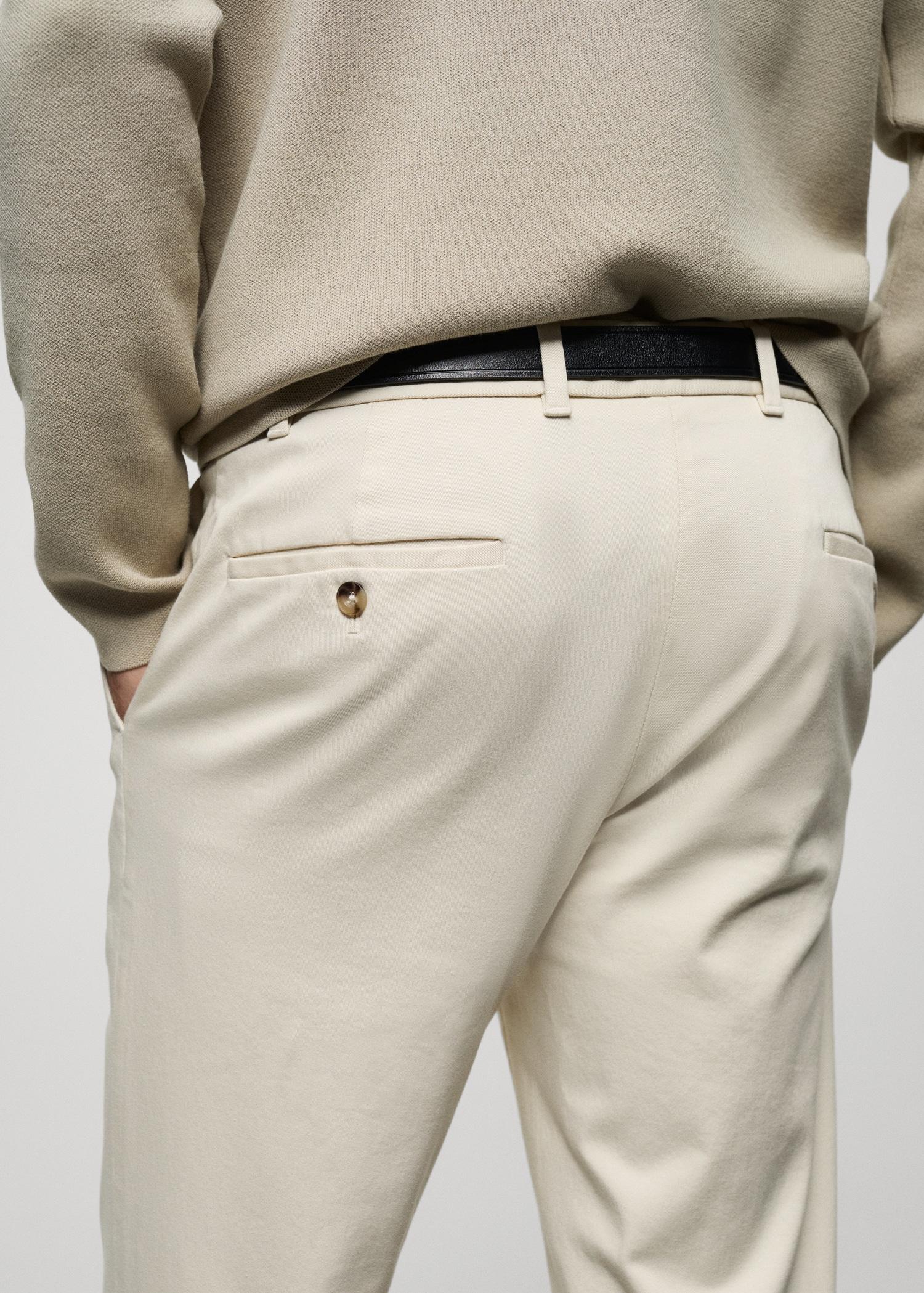 Cotton-blend fabric. Chinos style. Slim fit. Zip and one button fastening. Belt loops. Five pockets. Two side pockets. Two welt pockets and button on the back. The model is 6'1" and is wearing a size 42. Inside leg measurement 33.03 in. Side length 42.09 in. The Travel suit is part of the Performance selection, which includes garments designed to keep you intact and, above all, comfortable throughout the day. This suit has a slim fit and is made from stretchy, crease and water-resistant wool fabric. In addition, it incorporates 37.5® thermoregulation technology to accelerate evaporation and perspiration, so you never feel too hot or cold, while maintaining body temperature.