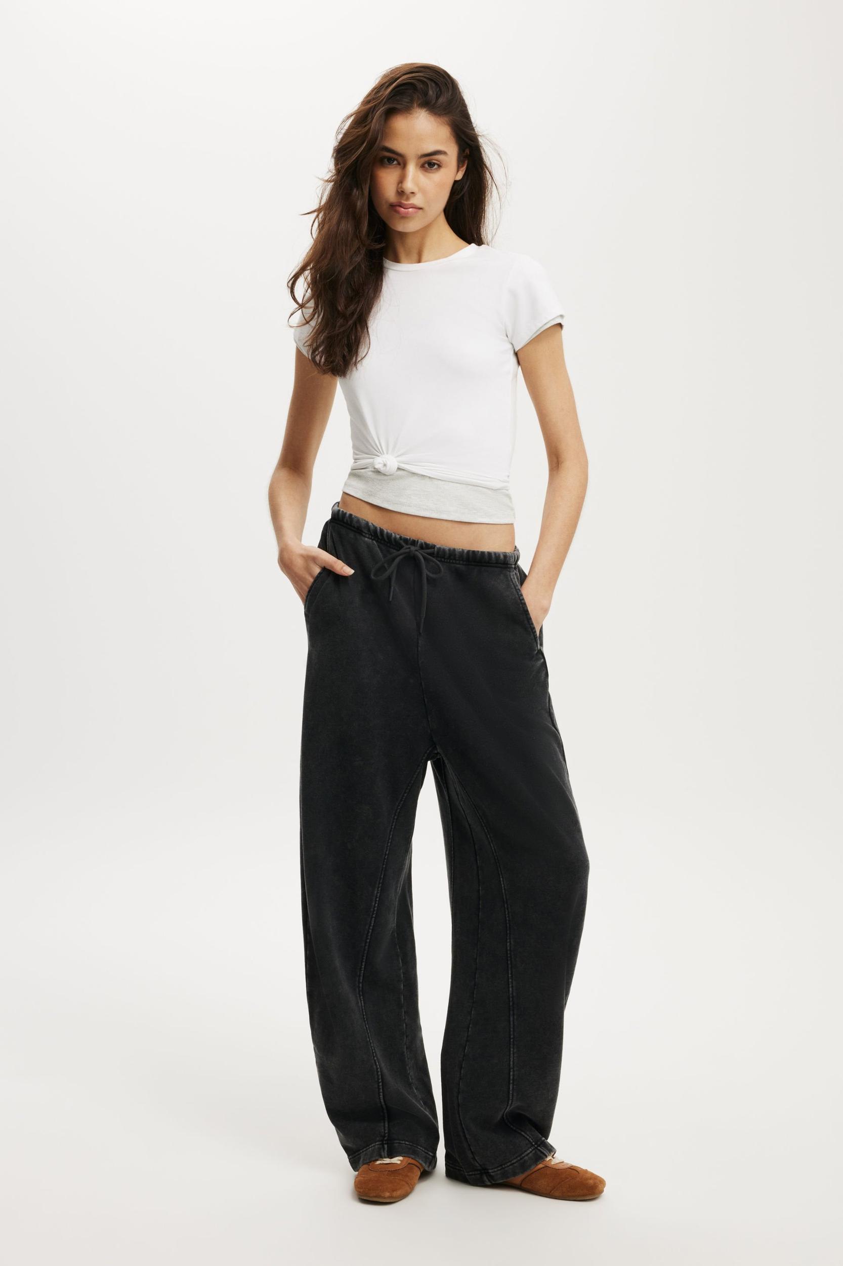 Mid rise fit ,Barrel leg silhouette ,External Drawcord ,Leg panel seam detailing ,Back and side pockets Main: 80% Cotton, 20% Polyester.