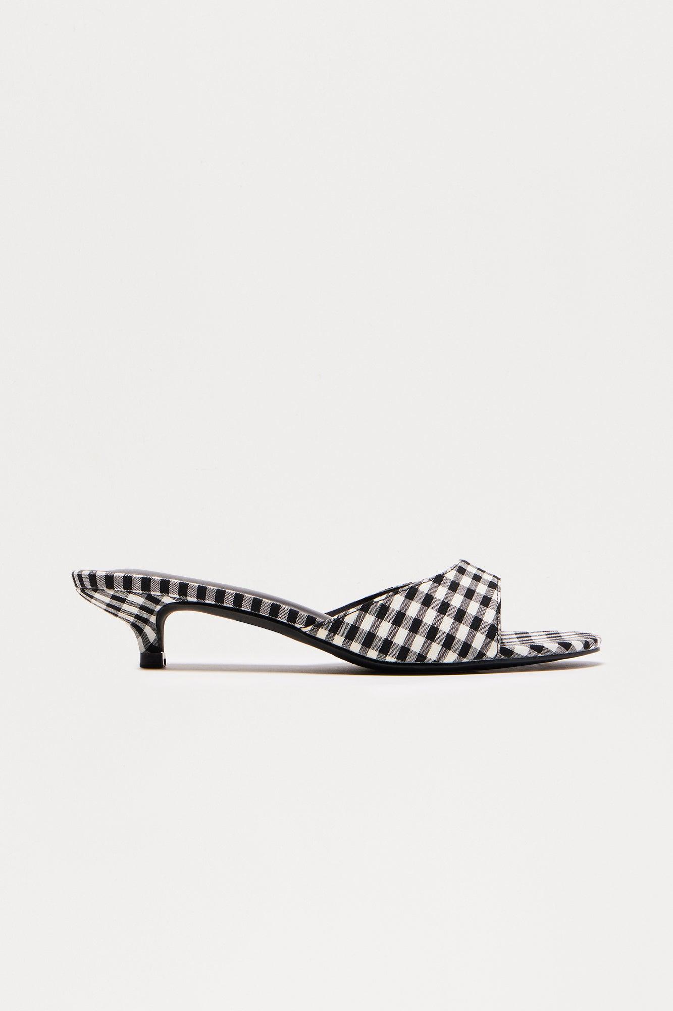 Available In Black/White. Heeled Sandals Round Toe 1.5" Low Kitten Heel Imported California Proposition 65WARNING: Cancer and Reproductive Harm - www.P65Warnings.ca.gov.