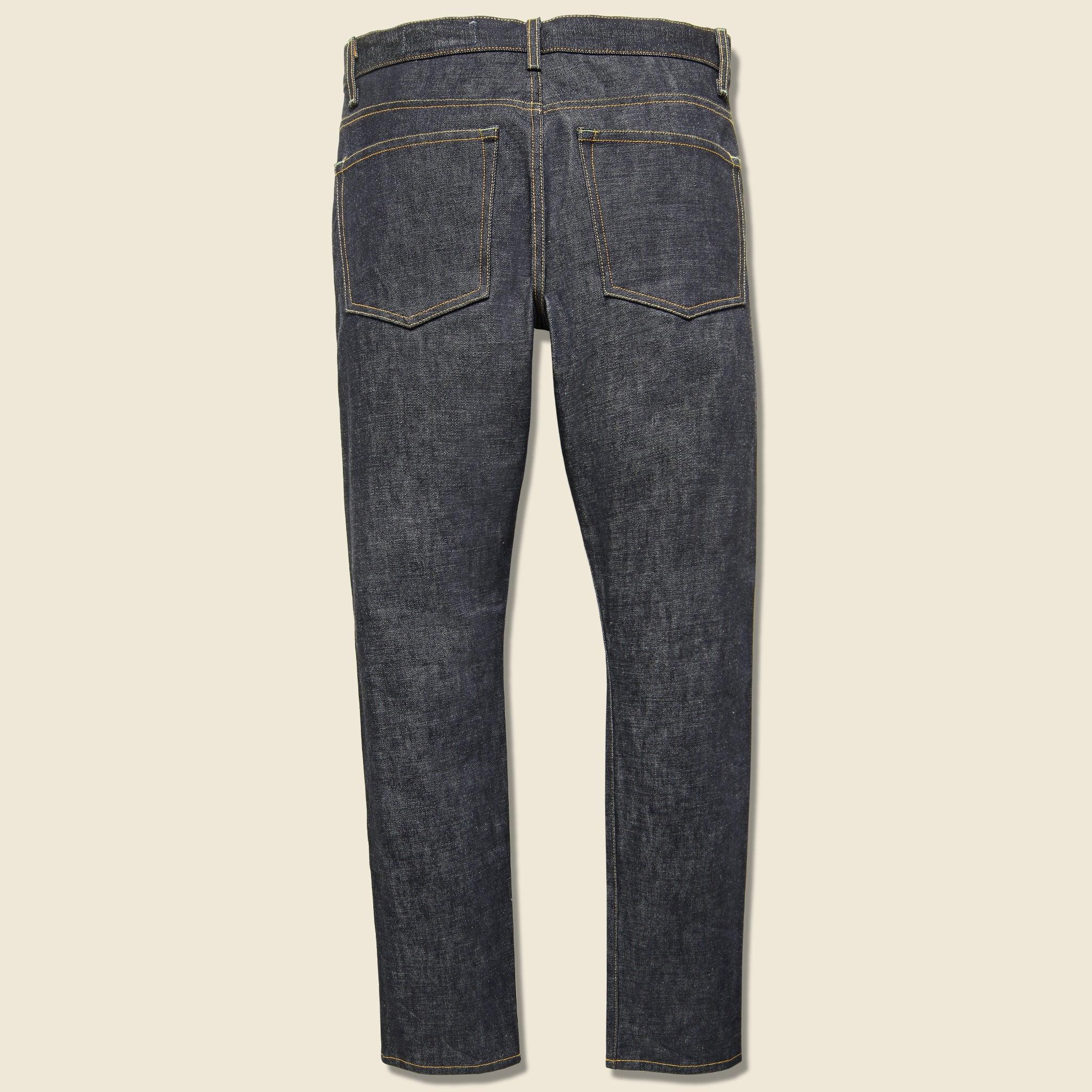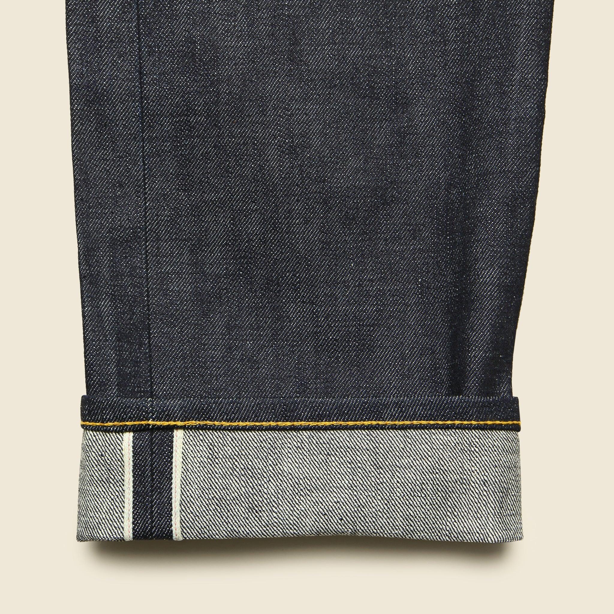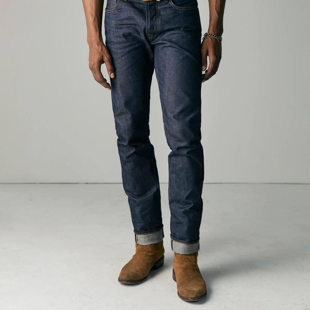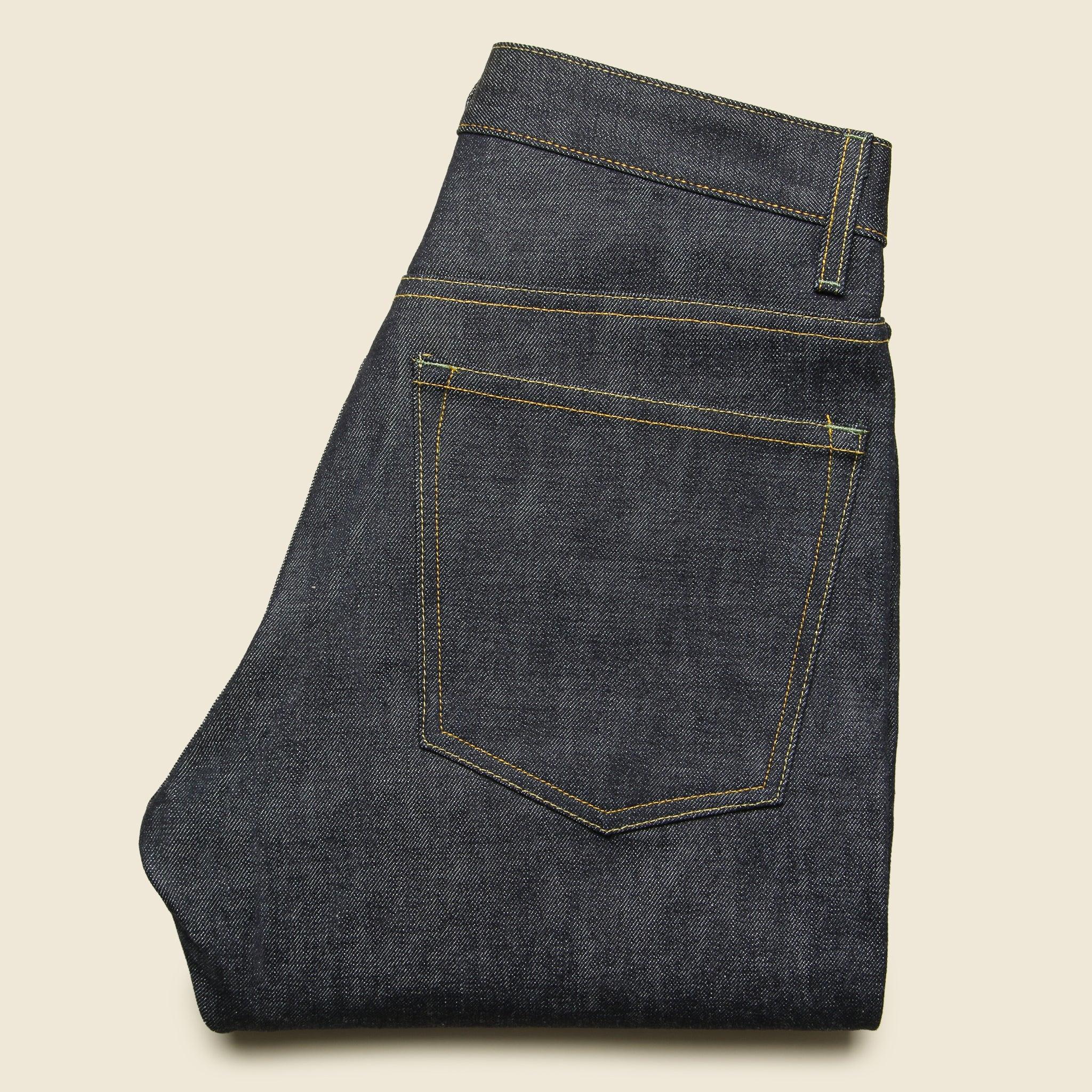 Designed with a slightly slimmer leg than the original Barton, the Barton Slim from Imogene + Willie is cut from rich indigo-dyed 13.5oz Nihon Menpu Japanese selvedge denim. Due to the nature of this denim, there is a slightly longer break-in compared to classic Cone Mills denim. The deep indigo will show great character with time and wear. The 13.5oz sturdy, open weave denim makes for a great year-round jean. Tailored to sit right on the hips and slim through the thigh and knee, but not as slim as the Charlie. Imogene + Willie makes all of their jeans in small batches in the USA. 13.5oz Nihon Menpu Japanese selvedge denim Unwashed, rigid indigo Button fly, five-pocket styling Patterned cut and sewn Signature buttons and rivets Chainstitched Slim fit - Sits right at the hips, slim through the thigh & knee Made in USAMaterials: 100% cottonThe following measurements for size 32: Rise: 11" | Inseam: 34" | Thigh: 11" | Leg Opening: 14"