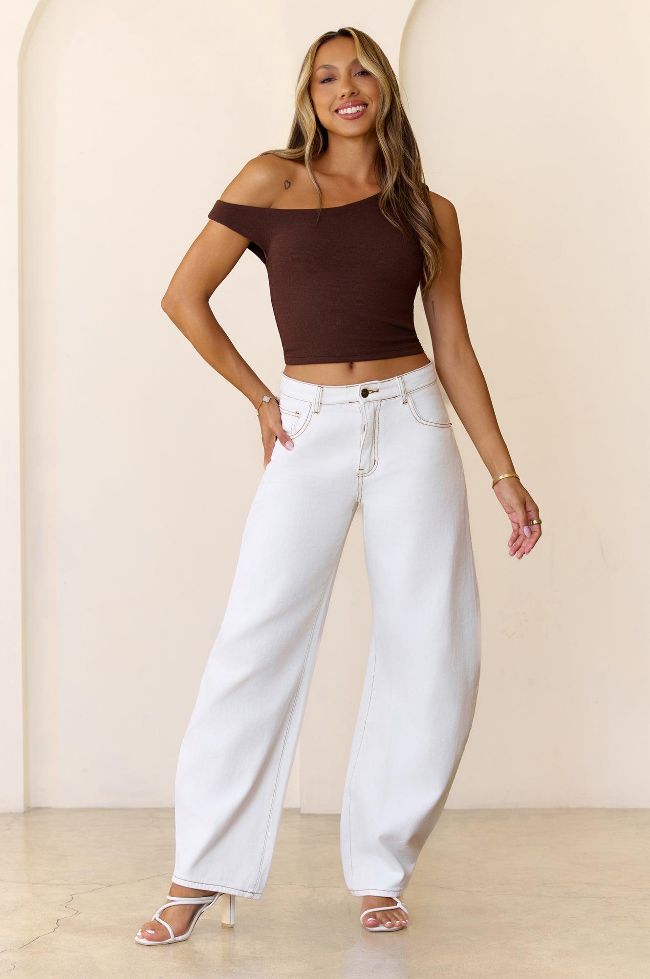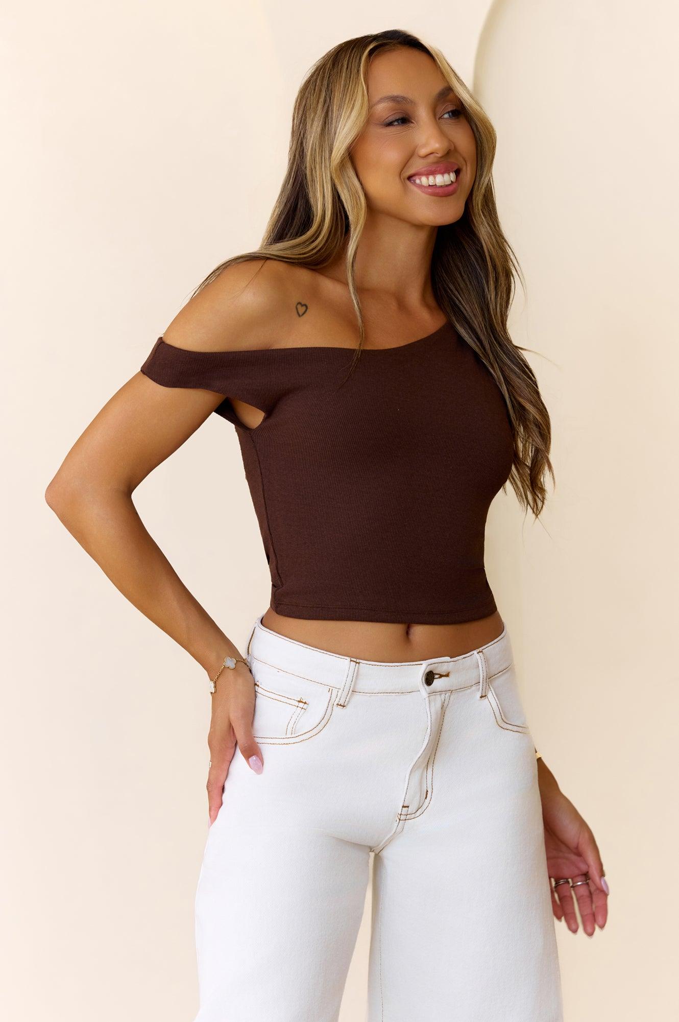 BASE Luxe Rib Luxe Line Off Shoulder Top Chocolate