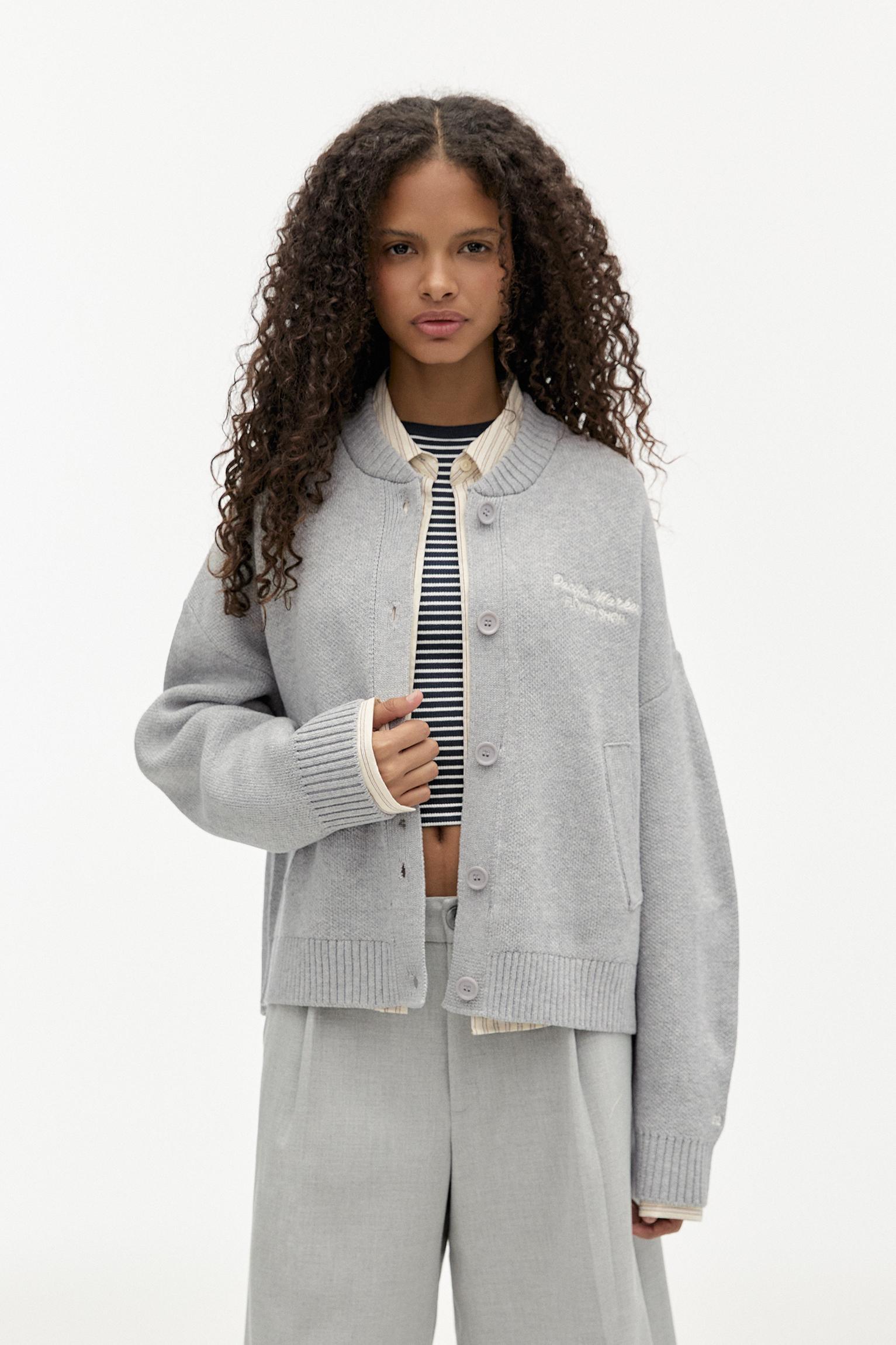 Baseball jacket with embroidered slogan