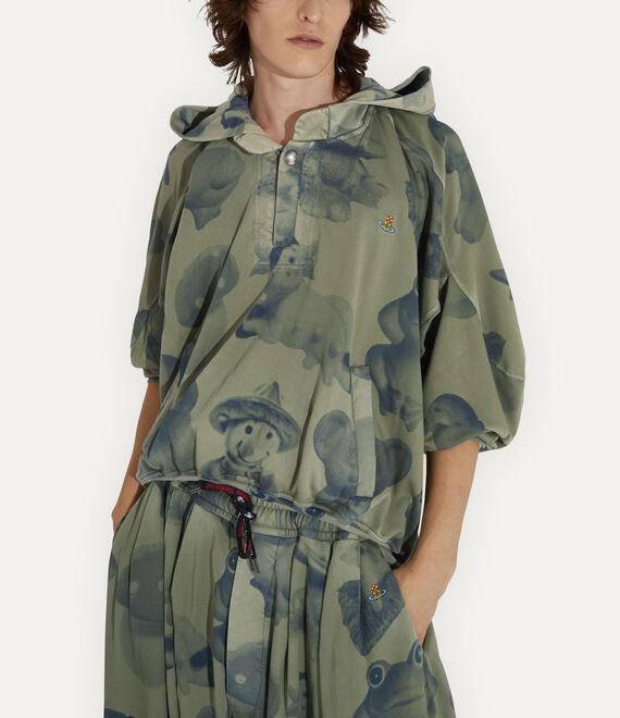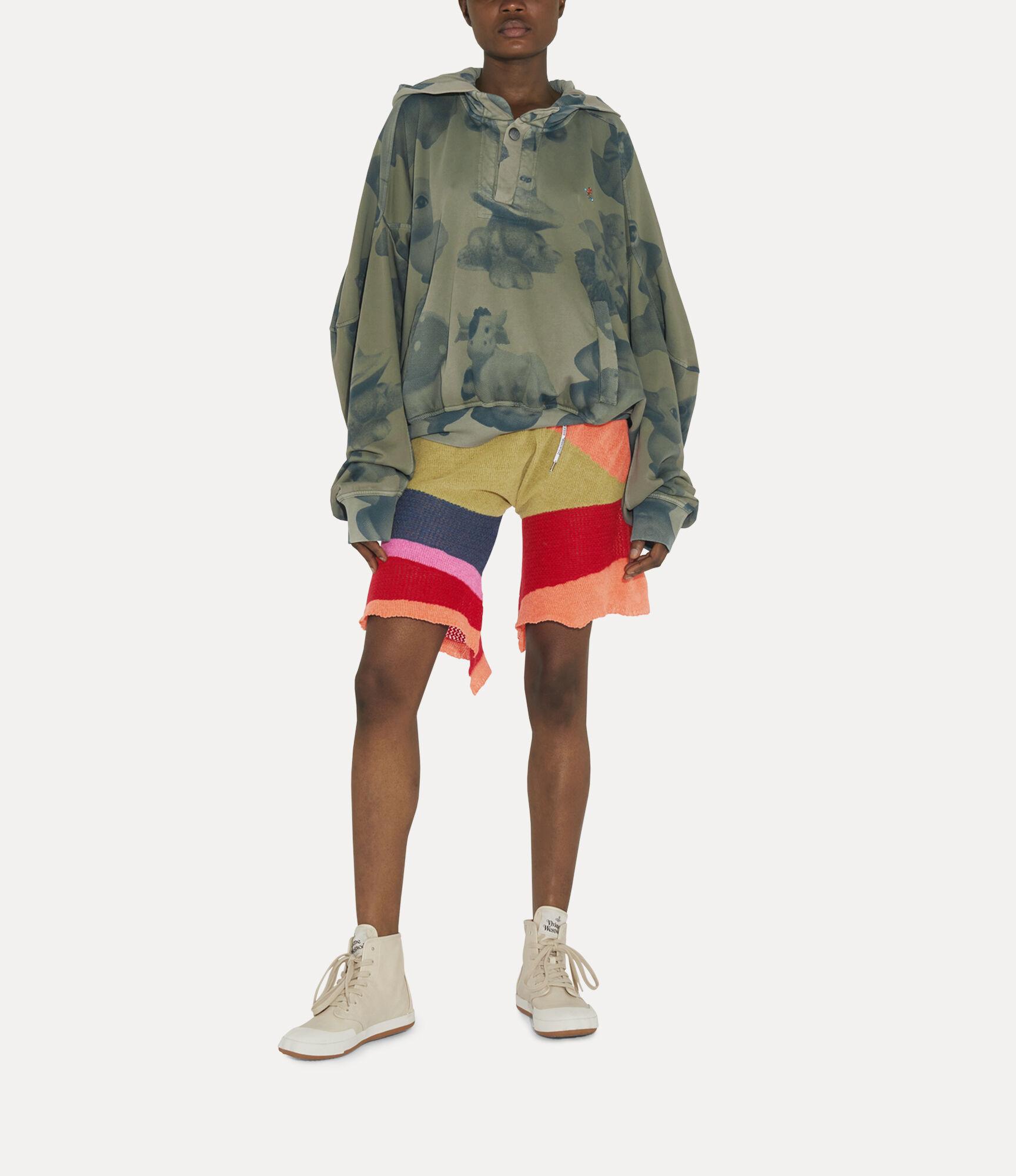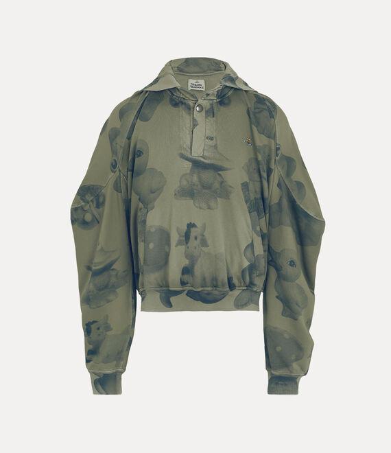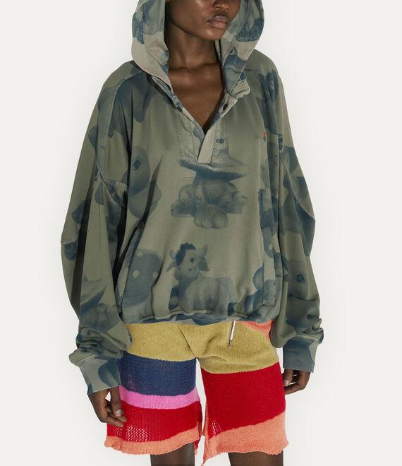 The silhouette of the Baseball sweatshirt takes inspiration from the sports jerseys worn in baseball, featuring dropped, voluminous shoulders and a V-neckline, complete with ribbed trims. The piece offers the 'Figurines' motif across the design, recalling the American Dust Bowl theme that runs through our collection, branded with press button fastenings that are engraved with our signature monogram motif