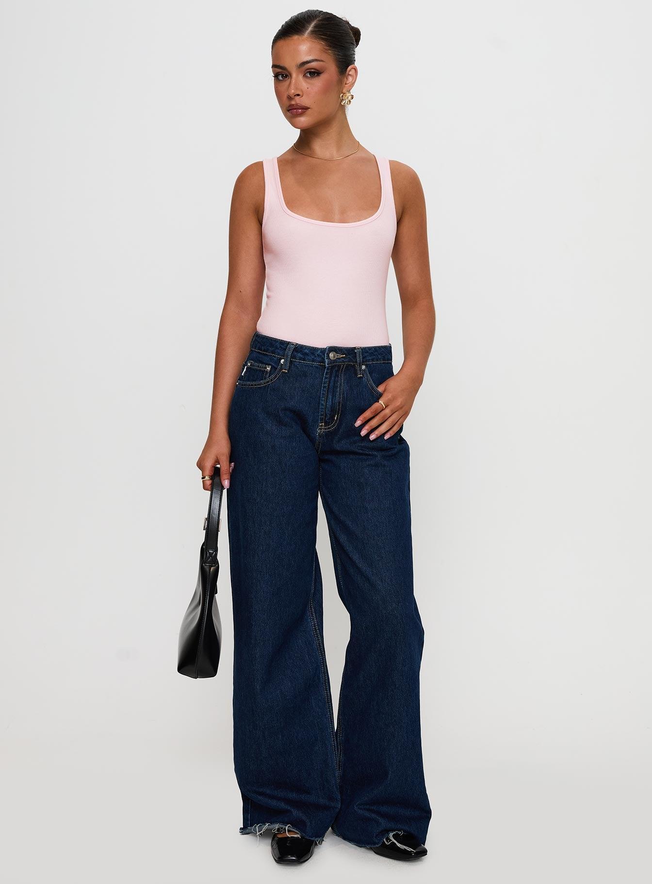 Rib bodysuit Square neckline, sleeveless, press clip fastening at base, cheeky cut bottom, slim-fit Good stretch, unlined Princess Polly Lower Impact 95% reclaimed cotton 5% spandex Cold hand wash
