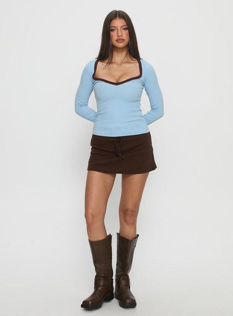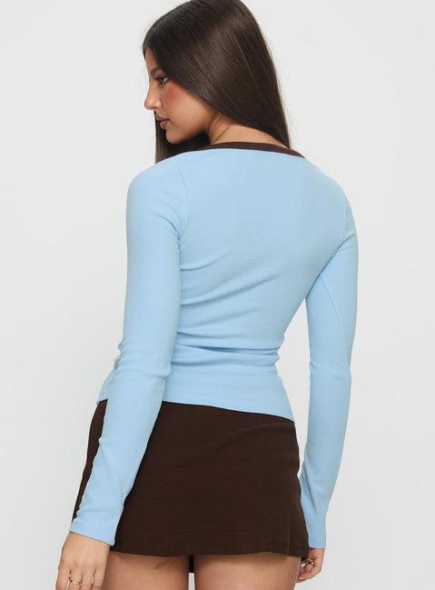 Baseline V Neck Long Sleeve Top Blue / Brown