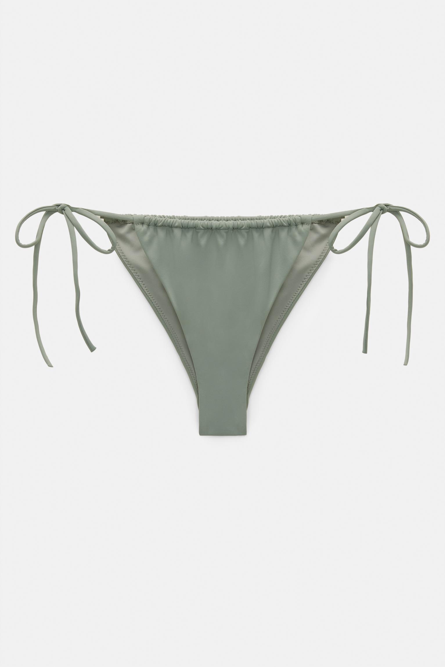 Basic bikini bottoms with tied side straps and gathered detail. Available in a range of colors.