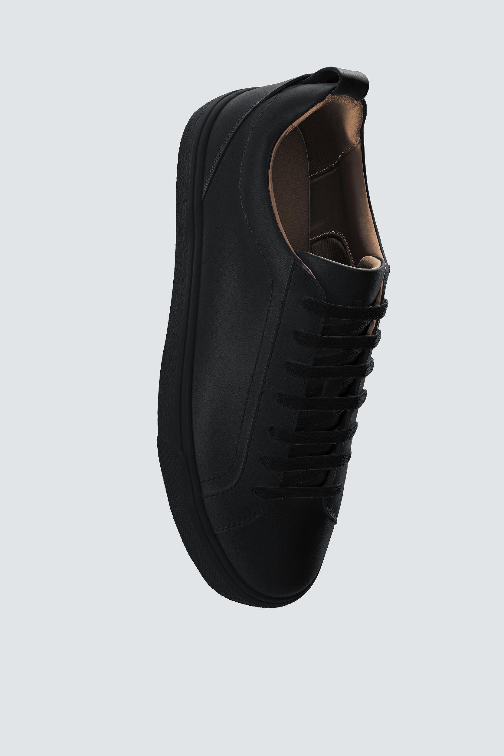 Basic lace-up sneakers. Smooth upper. Rounded shape. Matching sole.