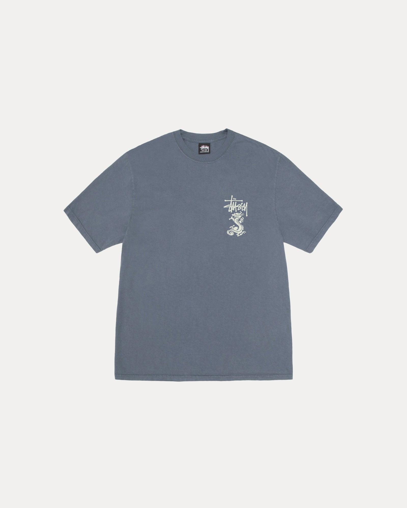 Relaxed fit pigment dyed tee in midweight 220gsm cotton jersey. Stüssy basic logo at left chest and across back. Screenprinted using water-based ink for a soft hand feel. - Shortsleeve - Ribbed collar - Relaxed fit - Unisex - Material: 100% cotton - Imported *This garment has been individually dyed, producing a one-of-a-kind result. Color may fade or bleed after wash.