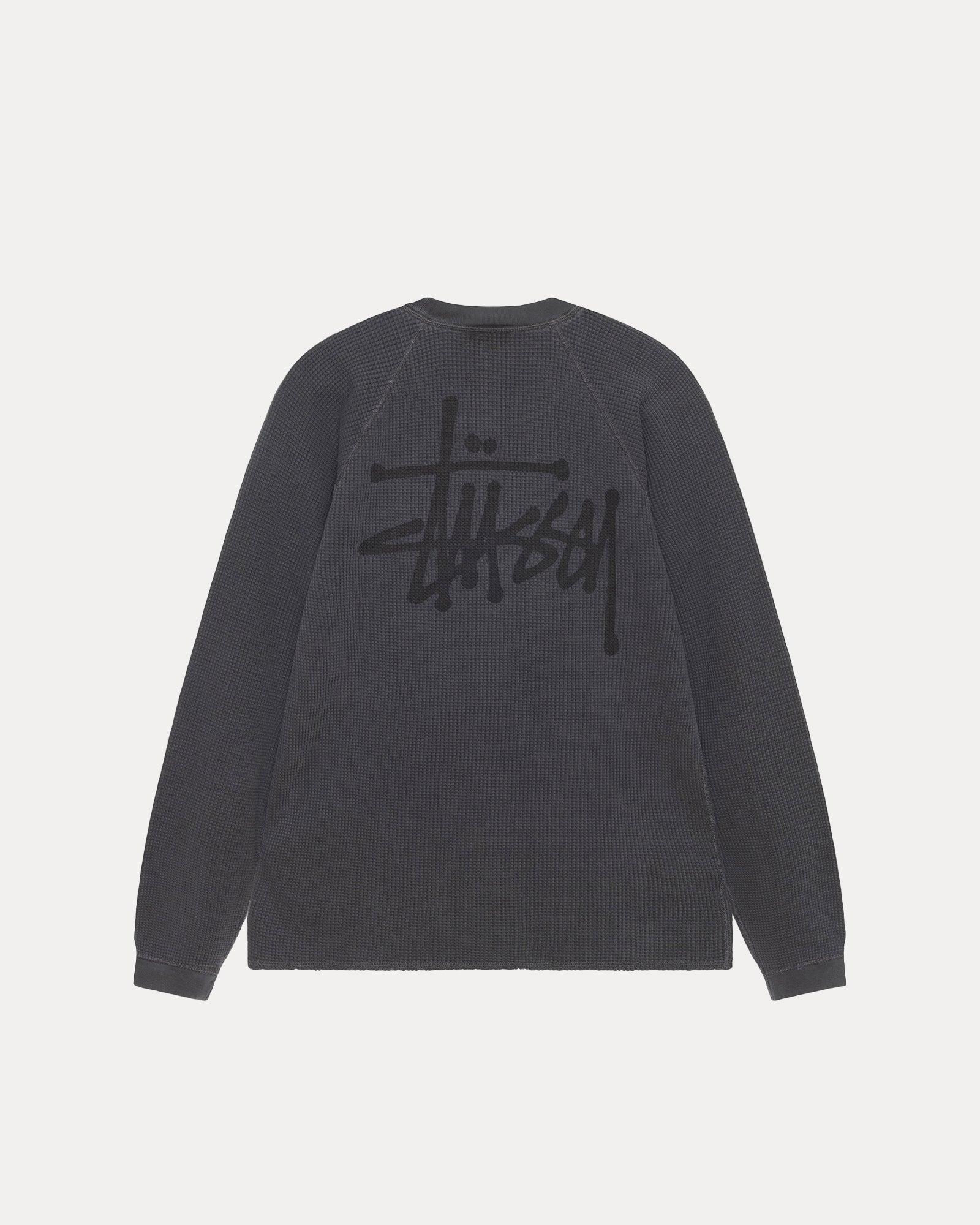 Relaxed thermal tee in acid wash waffle knit cotton. Stüssy basic stock logo printed at the left chest and across the back. - Ribbed crewneck and cuffs - Raglan sleeve - Relaxed fit - Unisex - Material: 100% cotton - Imported