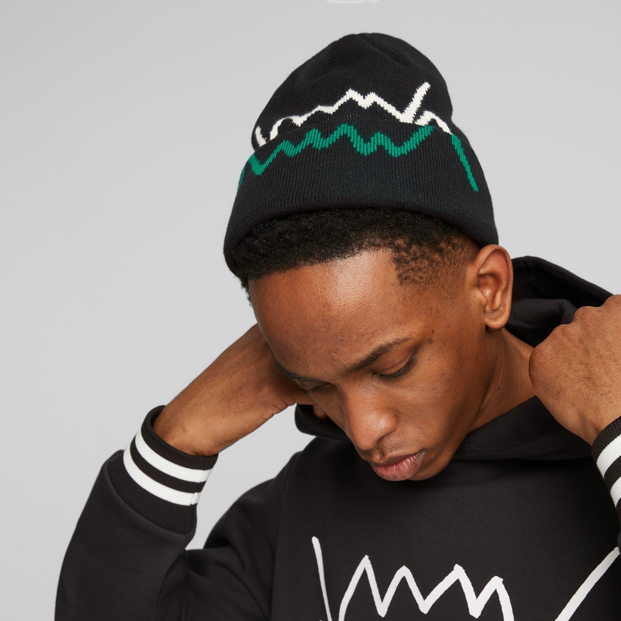 Whether you're wearing it courtside or on the hardwood, show your love for the game with this basketball beanie that dons the signature PUMA HOOPS jaws logo on the front.Part of a stylish PUMA ensembleJacquard jaws logo on frontWoven PUMA jaws logo label on back