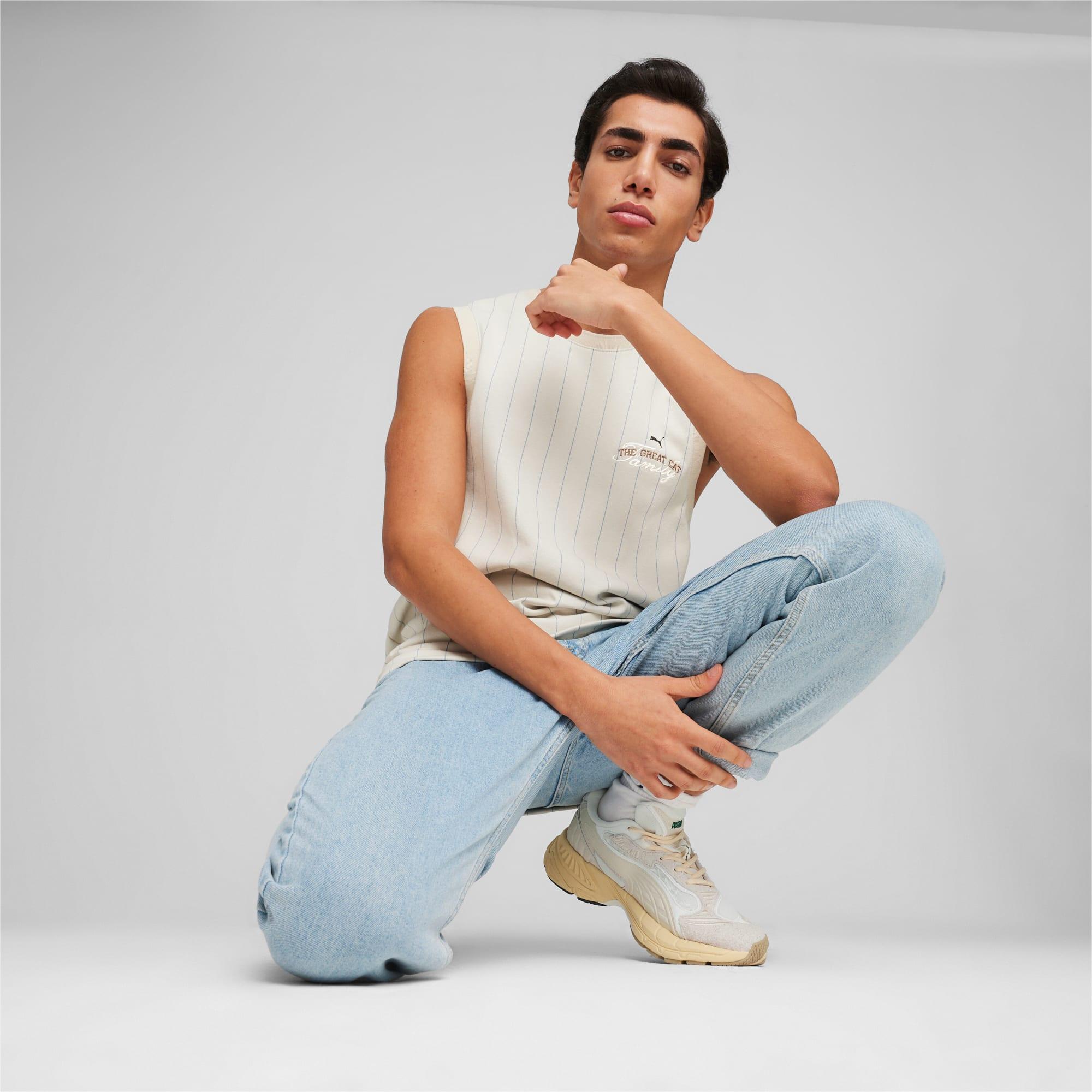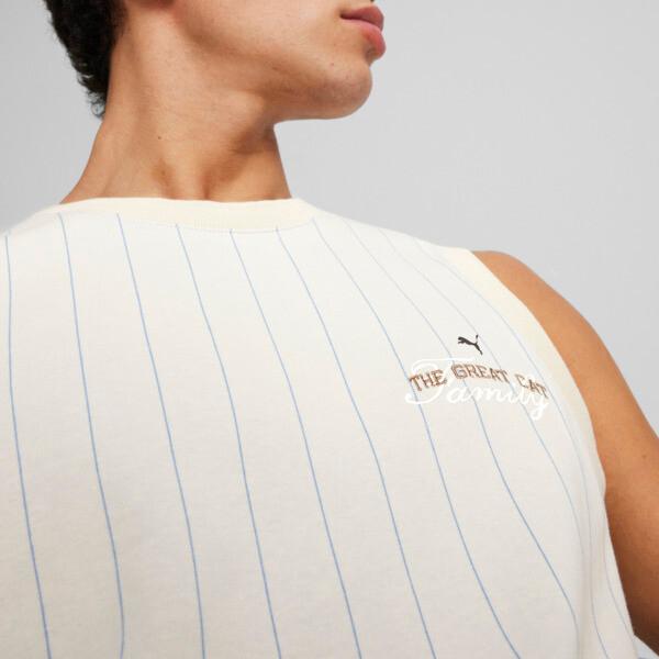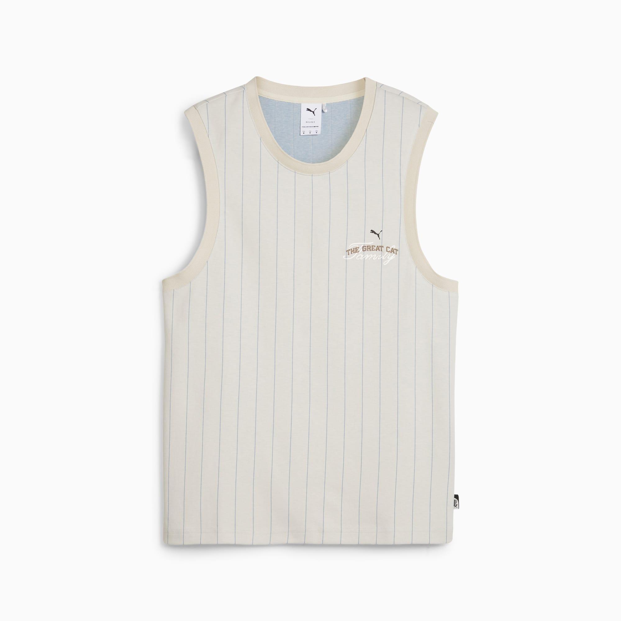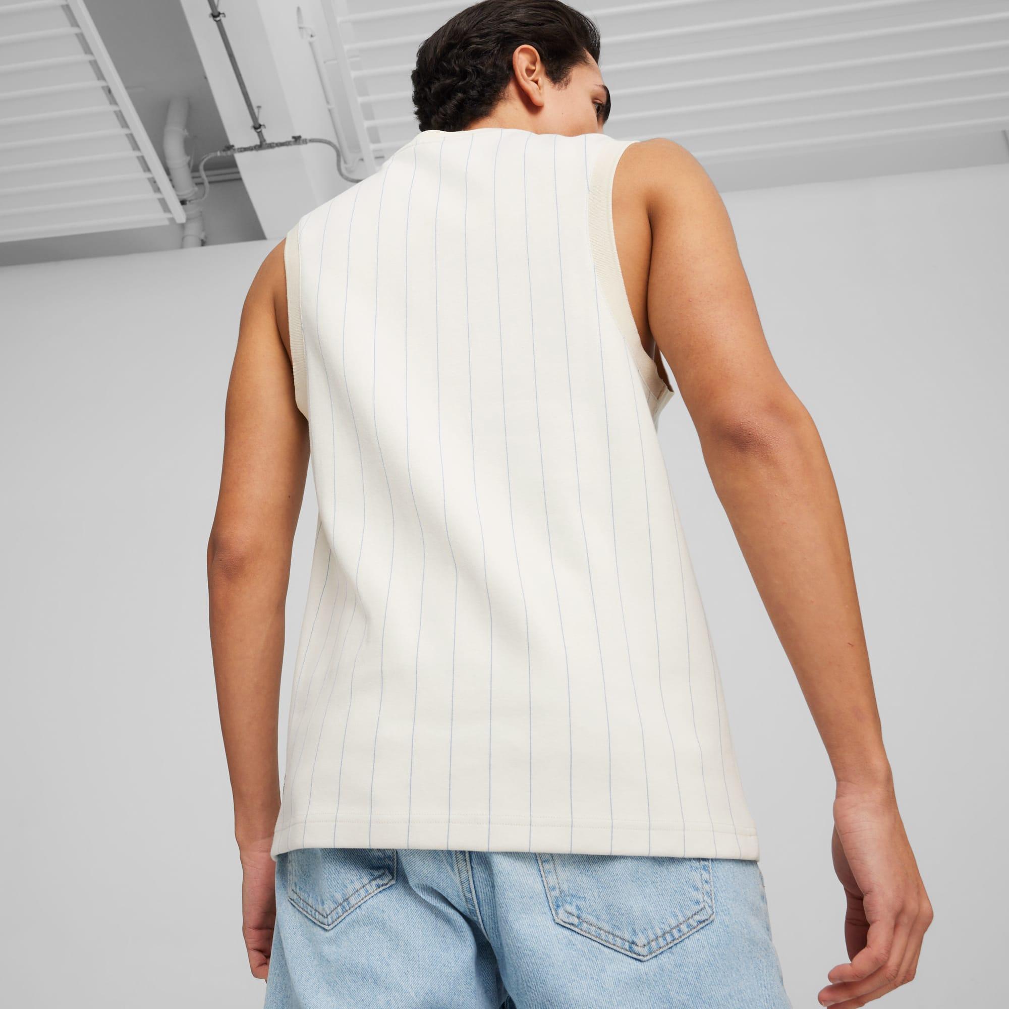 1970s basketball inspiration meets sartorial detailing in this new concept. Court are transformed with raised embroidery, subtle colorblocking, and fonts that draw from basketball jerseys. The result is an elevated, court-turned-street look. This jersey is made fwith a striped jacquard knit and features a fit for that retro hardwood aesthetic.Regular fitStriped jacquard knitCrew neckSleevelessEmbroidered PUMA logo
