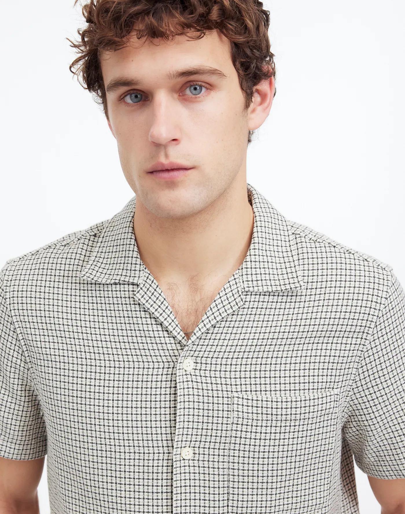 Basketweave Short-Sleeve Button-Up