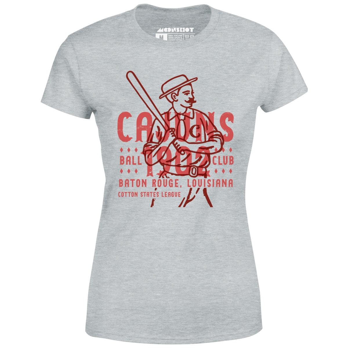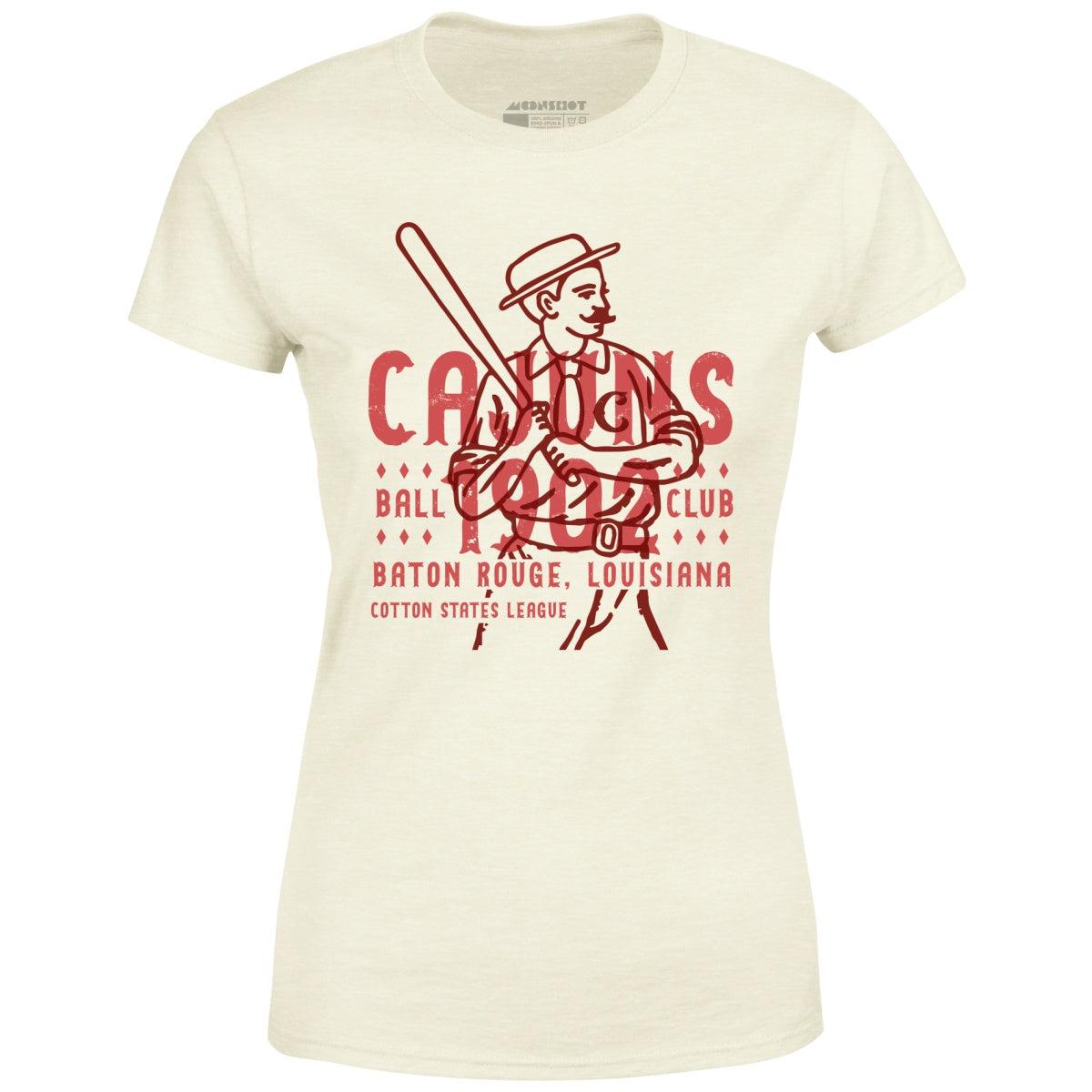 The Baton Rouge Cajuns were an old school minor league baseball team based in Baton Rouge, Louisiana. They were established in 1902 and played in the Cotton States League. This design is part of our old school retro baseball tees inspired by the vintage and defunct, forgotten and obscure Minor League Baseball teams of yesteryear. Featuring original designs, re-imagined from scratch. Printed on our super soft 100% ringspun & combed cotton women's T-Shirt. Or upgrade to our Luxury 52/48 cotton/poly vintage heather edition for an even softer classic look. We print & ship all of our high quality graphic tees in the USA.