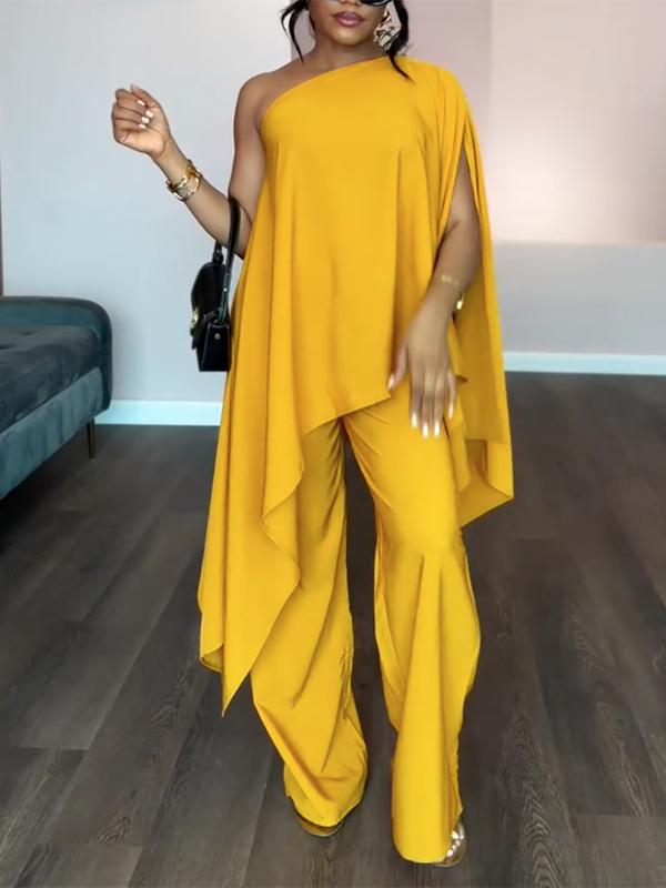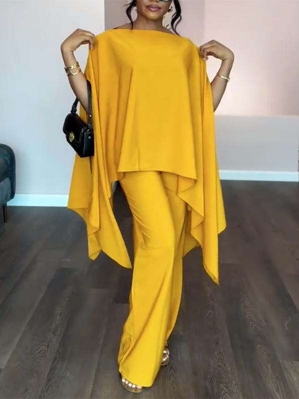 Batwing Sleeves Half Sleeves Solid Color Round-Neck T-Shirts Tops Casual Pants Bottoms Two Pieces Set