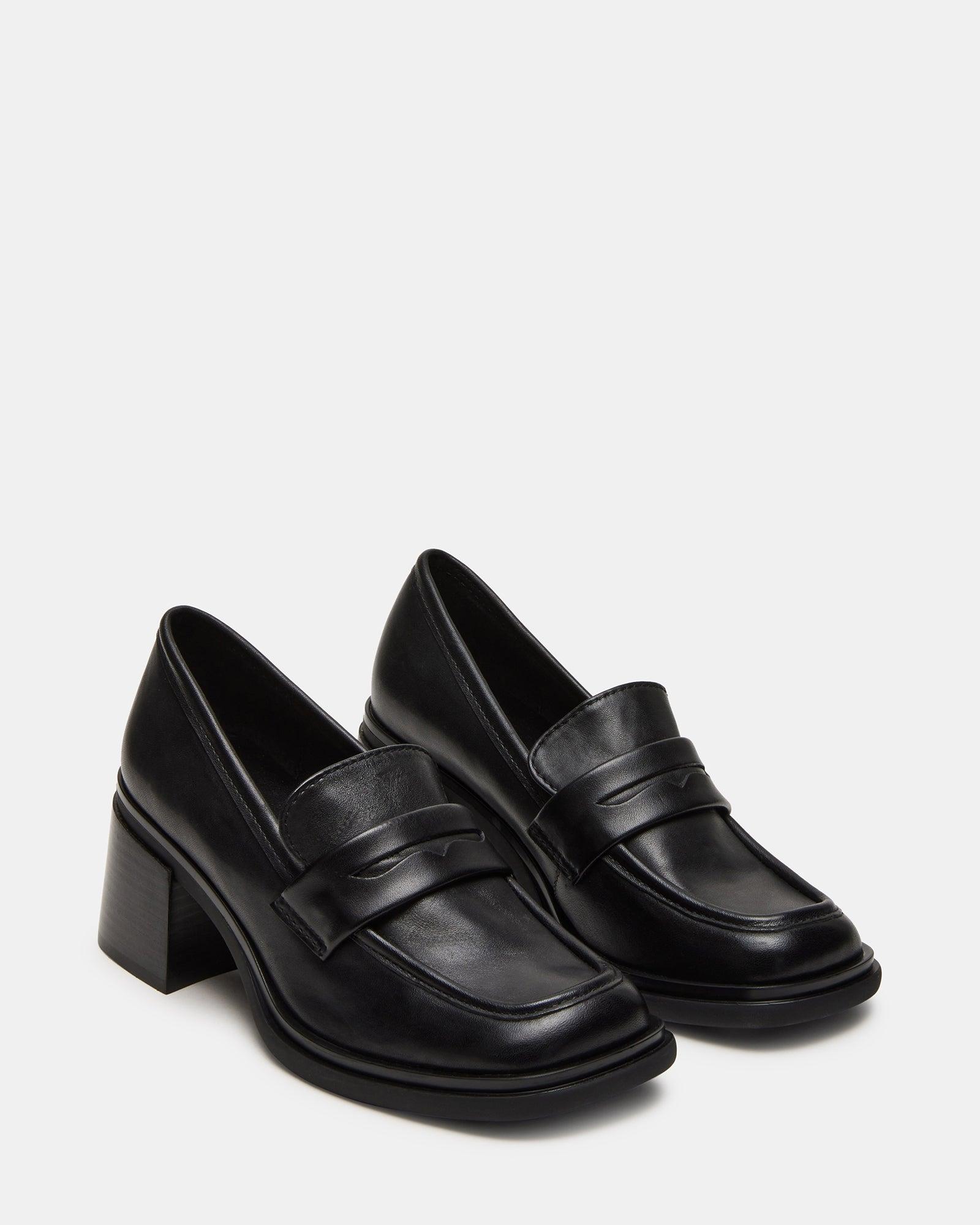 Experience comfort and style with our BAXTER square toe, block-heeled loafer. Perfect for any occasion, the sleek design provides a sophisticated touch while the block heel offers stability and support. Step into luxury and elevate your look with every step. 2.5 inch heel height Leather upper material Textile and synthetic lining Synthetic sock Synthetic sole Fit tip: If you are in between sizes, size up a half-size Imported